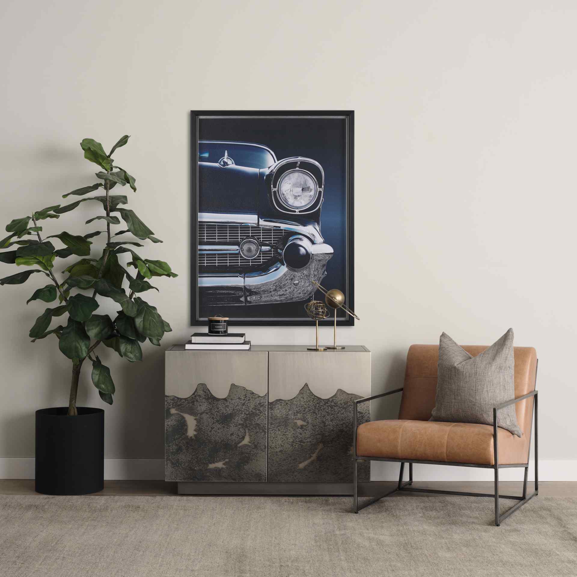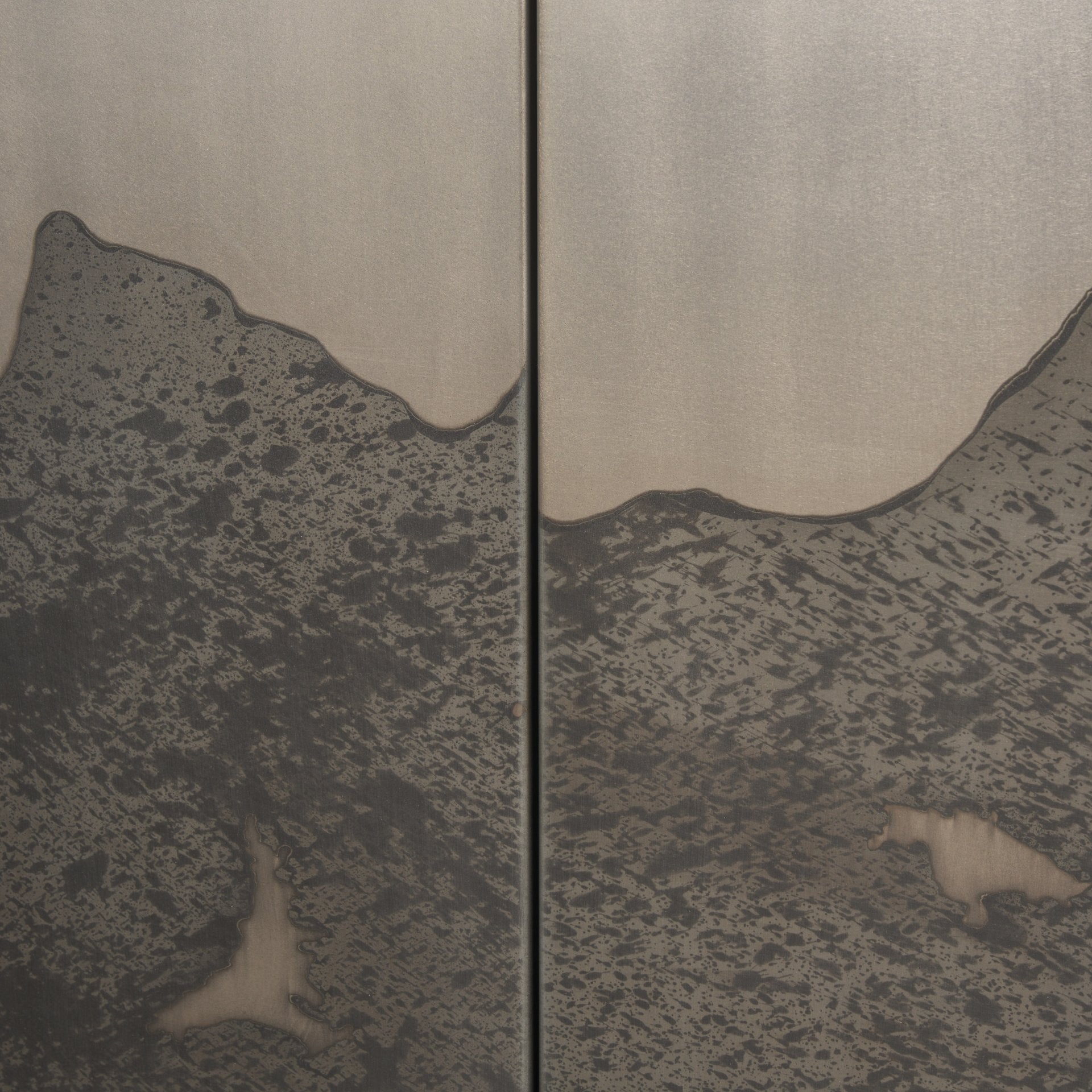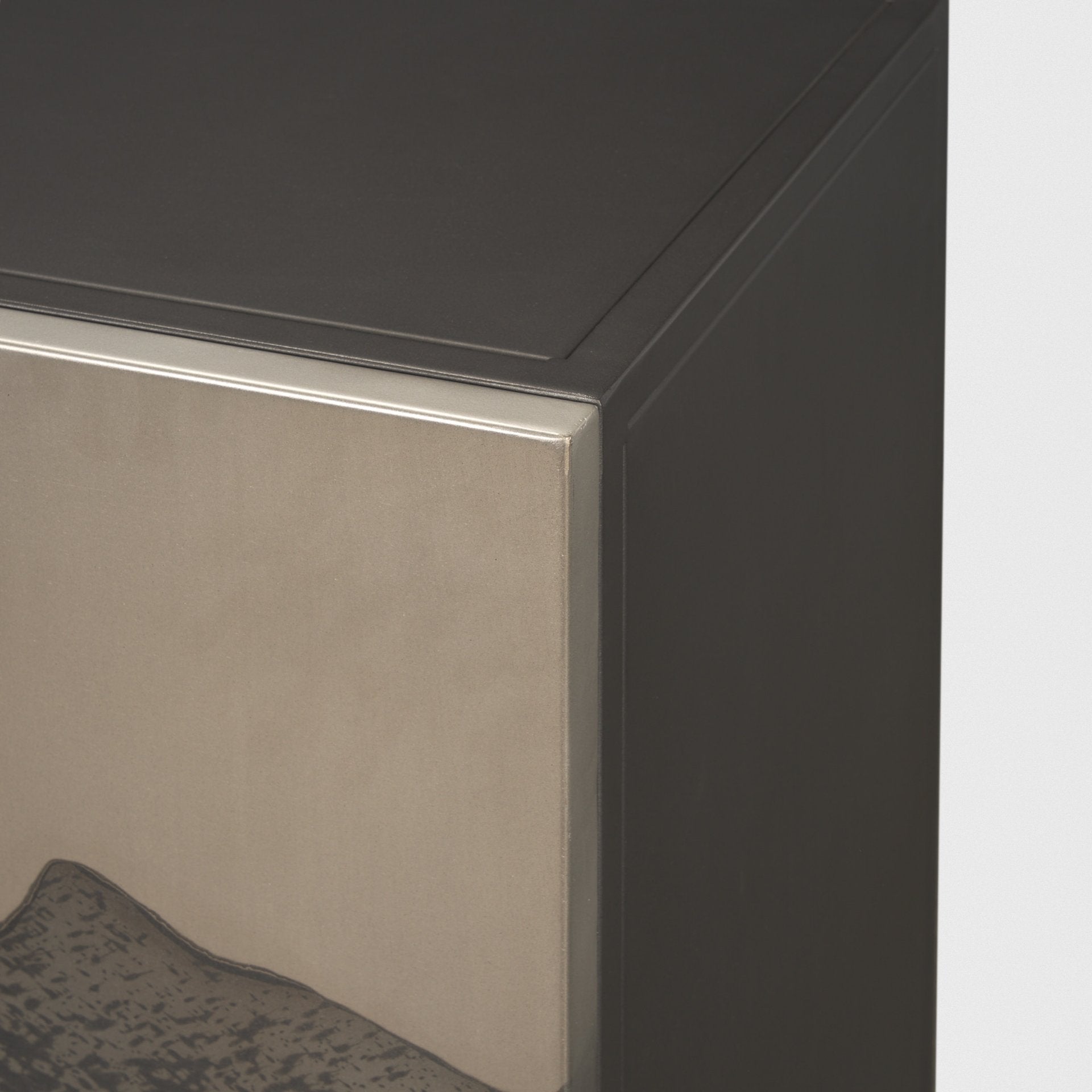 The Roxdale Accent Cabinet brings a fresh perspective to contemporary design with its robust iron construction and unique hand-thrown acid treatment. This process ensures that each cabinet is a one-of-a-kind creation, blending light and dark tones seamlessly. With its two seamless, handleless doors, the cabinet offers a minimalist yet striking appearance, making it a perfect addition to any modern living space. Its bold design is not only visually appealing but also highly functional, providing practical storage solutions with a fixed interior shelf.