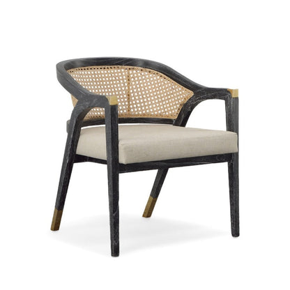 Embrace your daring spirit with our Two Tone Cane and Wood Accent Chair. Fashioned with top-of-the-line plantation-grown mahogany and cane, and accompanied by performance linen-blend upholstery, this 35lbs chair strikes the perfect balance between indulgence and ease. With a 250-pound weight limit, it's a necessity for any space. Elevate your space with our Two Tone Cane and Wood Accent Chair. Expertly crafted with plantation-grown mahogany and cane, this Royce Lounge accent chair exudes finesse and style.