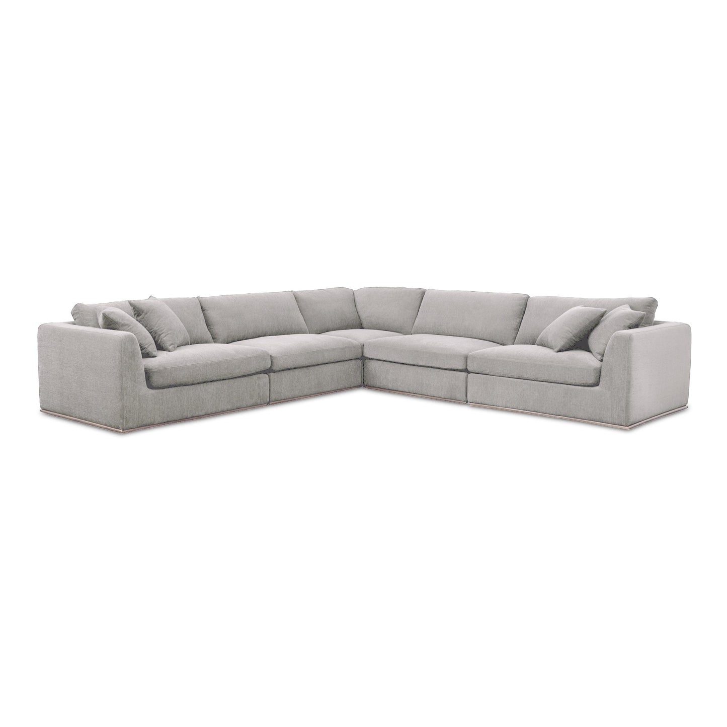 The Rue Classic L Modular Sectional combines refined design with exceptional comfort, making it a standout centerpiece for modern living spaces. Upholstered in 100% polyester, it comes in off white, dark green, and flecked grey color options, each offering a soft, luxurious feel that enhances any decor style. Its elegant silhouette is supported by a rubber wood base and small wooden legs, creating a sleek, floating appearance. With a bench seat and generous feather-filled topper, this sectional invites hours of cozy relaxation. Whether you're entertaining guests or unwinding after a long day, the Rue sectional delivers both style and substance in equal measure.