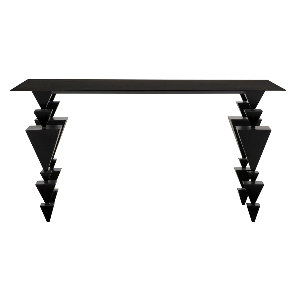 Minimalist yet bold, the Sagrada Desk is designed for modern workspaces. This desk is crafted entirely from industrial steel and features a striking matte black finish. Its clean lines and solid construction make it both durable and stylish. The geometric design with triangular legs and a flat rectangular top adds a touch of contemporary flair to any room. This piece not only serves as a functional workspace but also stands as a statement of modern design. The Sagrada Desk’s industrial steel material ensures that it withstands the test of time while maintaining its sleek appearance. The matte black finish gives it a sophisticated look that complements various interior styles.