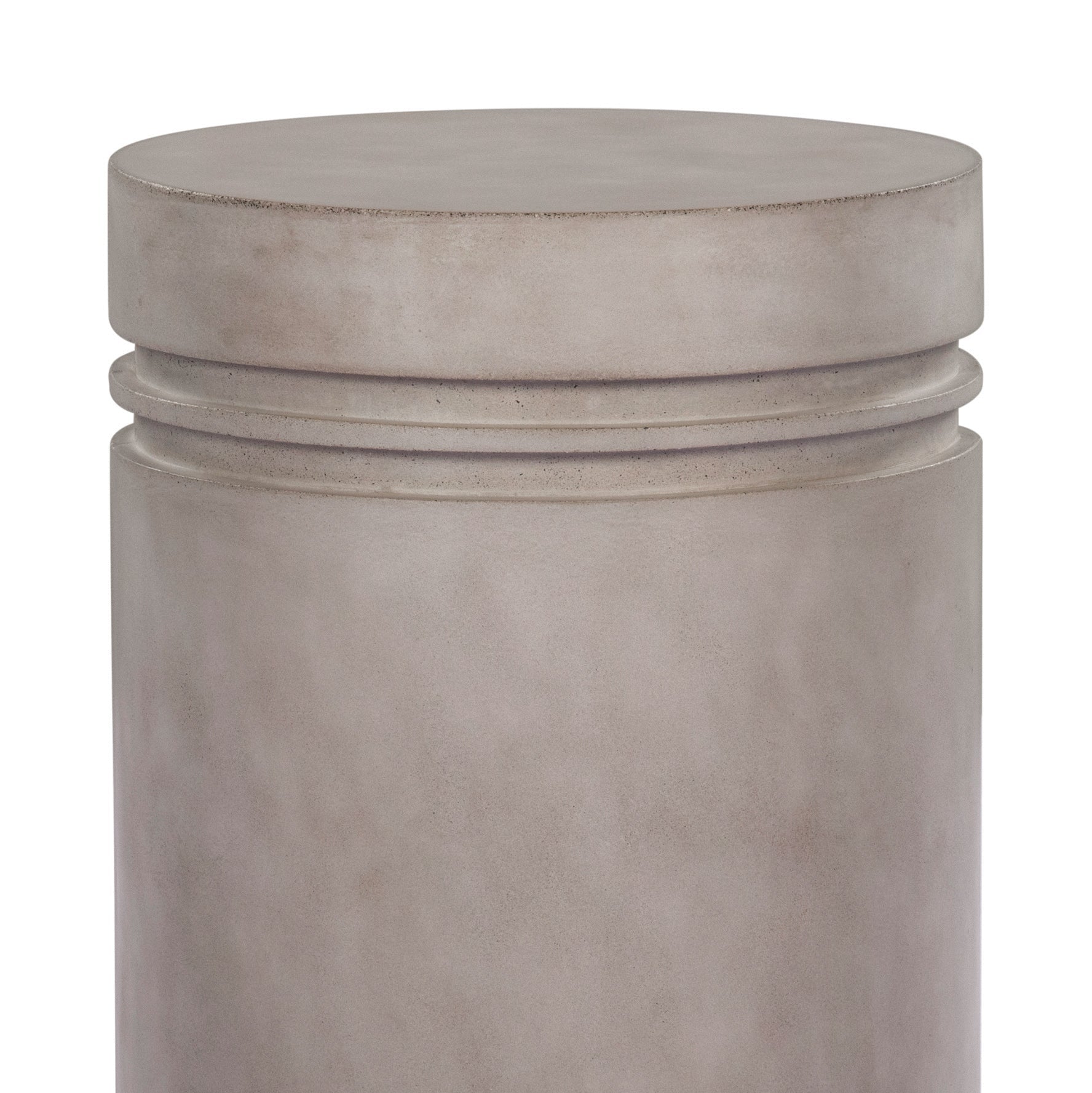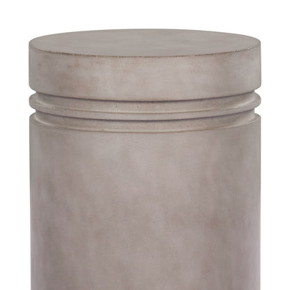 The Santori Double Ring Accent Table merges modern elegance with artisanal craftsmanship. Handcrafted from lightweight concrete, this cylindrical table features dual horizontal grooves, adding depth and sophistication to its design. Available in slate grey and ebony white finishes, each piece showcases smooth textures with natural imperfections, ensuring no two tables are identical. Designed for both indoor and outdoor use, its weather-resistant construction makes it a versatile addition to any space. Despite its sturdy build, the lightweight nature allows for easy repositioning, making it as functional as it is stylish.