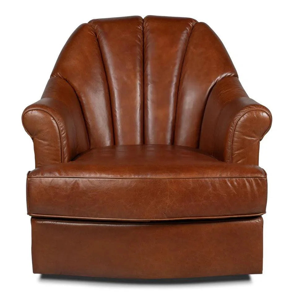 Experience luxury and comfort like never before with the Scoth Swivel Club Chair. Designed with Havana brown leather upholstery, this chair boasts a spacious 35"W x 39"D x 35"H frame and a seat measuring 25 inches wide, 20 inches deep, and 16 inches high. Complete with a swivel base and 24-inch high armrests, it effortlessly combines style and functionality, making it the perfect addition to any room. The sleek design and premium materials set this chair apart, making it a top choice for any modern and sophisticated home.