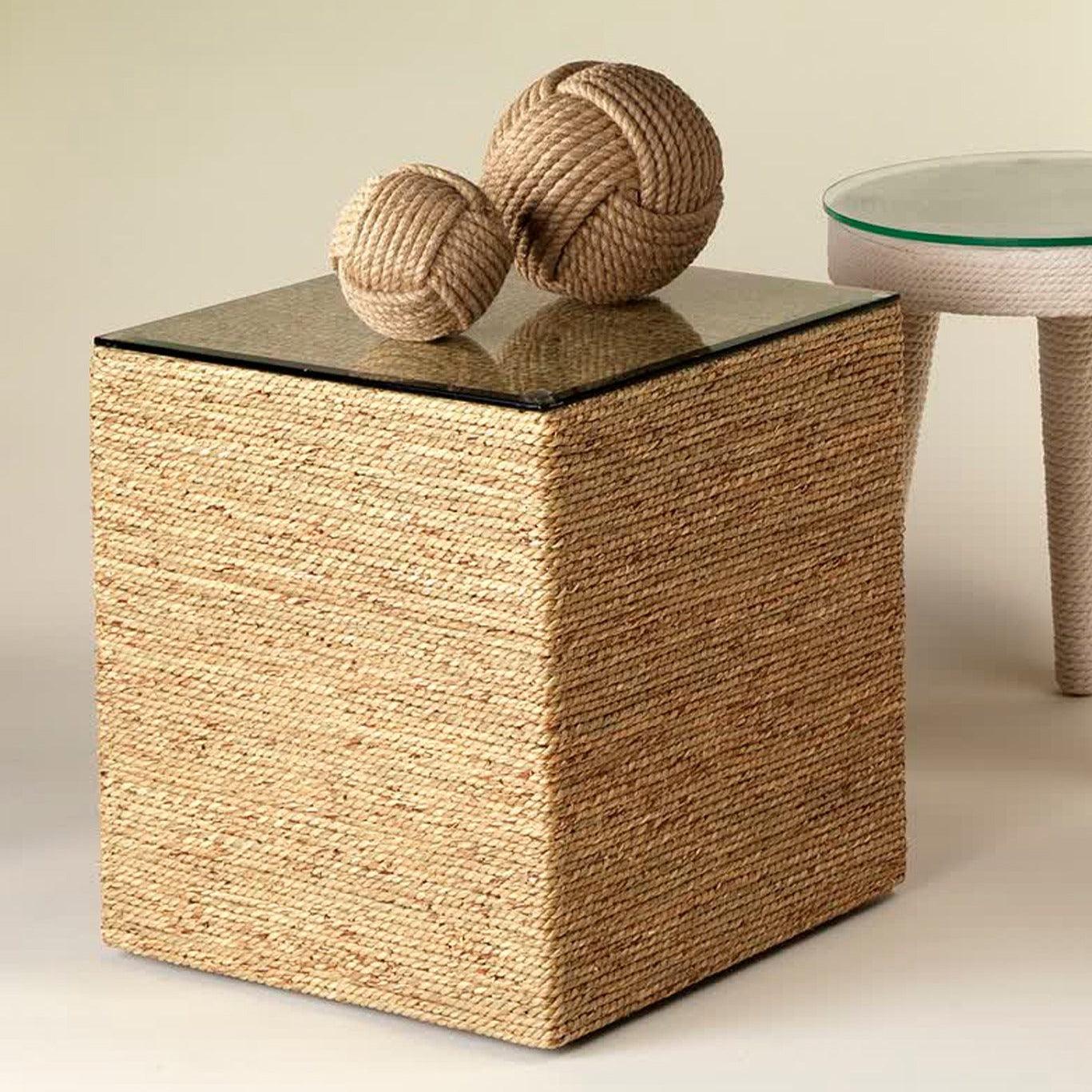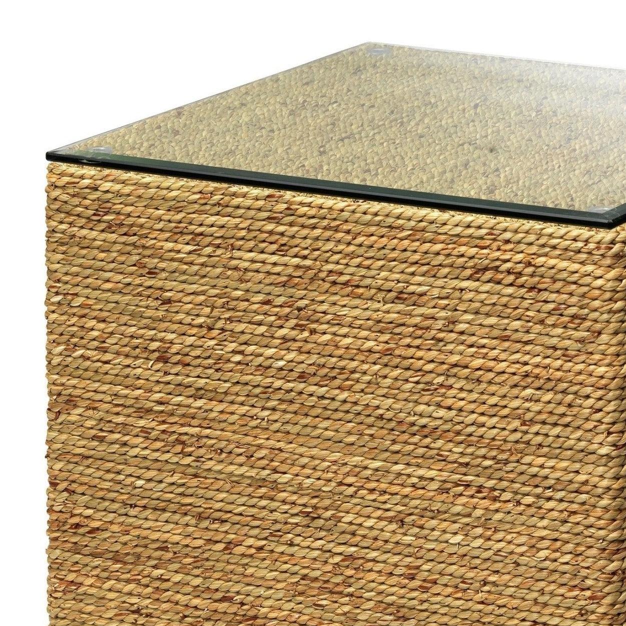 Crafted with care and expertise, the Seagrass & Glass Square Mid Century Modern Side Table is a valuable addition to any home. Made from sustainably harvested seagrass and tempered glass, this piece boasts exceptional quality and highlights the raw beauty of natural elements. Embracing the imperfections as part of its design, the Captain collection draws inspiration from coastal paradises for a charming touch. Each piece in this home accent furniture line is artisan crafted with a focus on sustainability, using seagrass and tempered glass to showcase the intrinsic allure of these materials. With a nod to the sea and sand, the collection exudes a sense of coastal elegance that's sure to enhance any living space.
