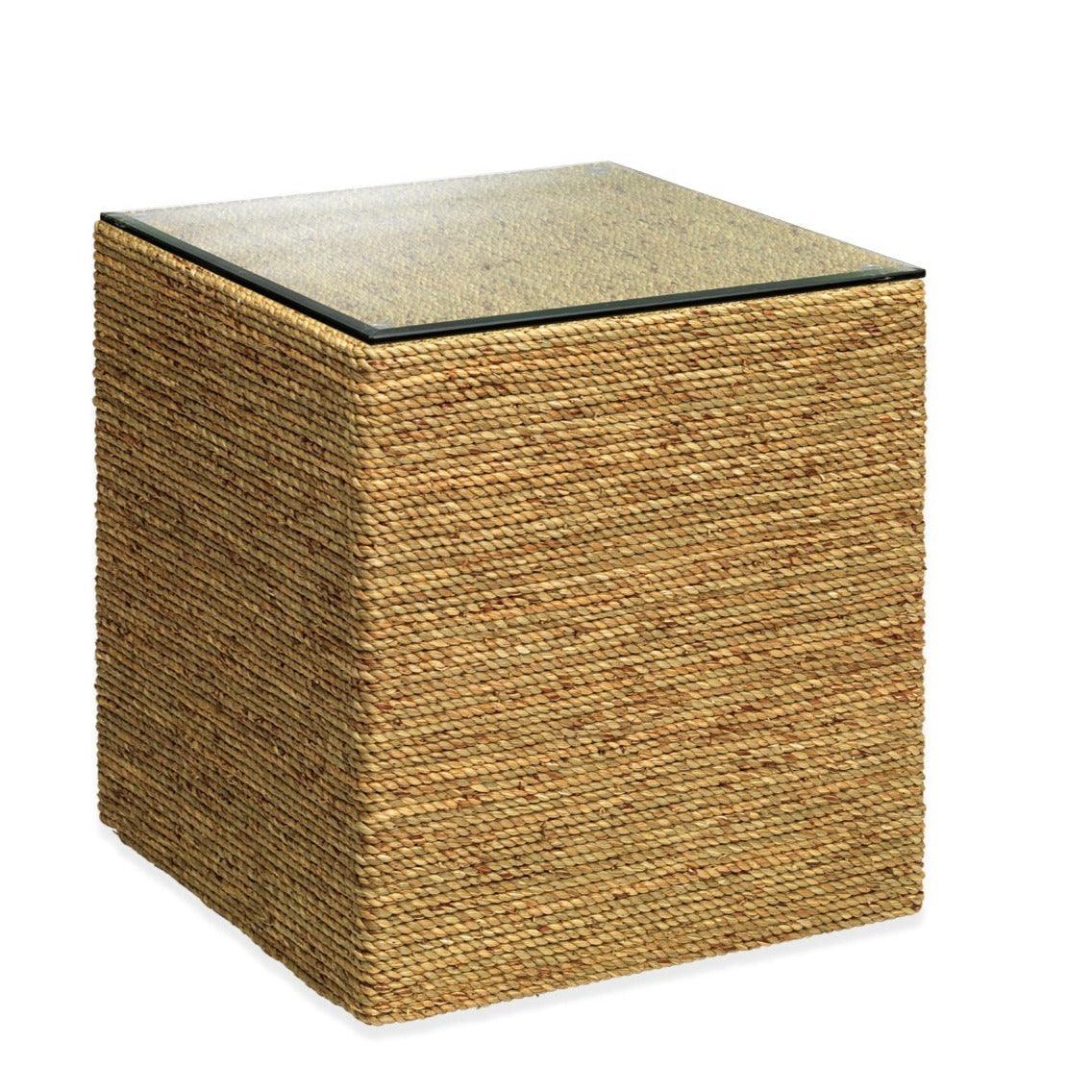 Seagrass, Glass Square Mid Century Modern Side Table Features: