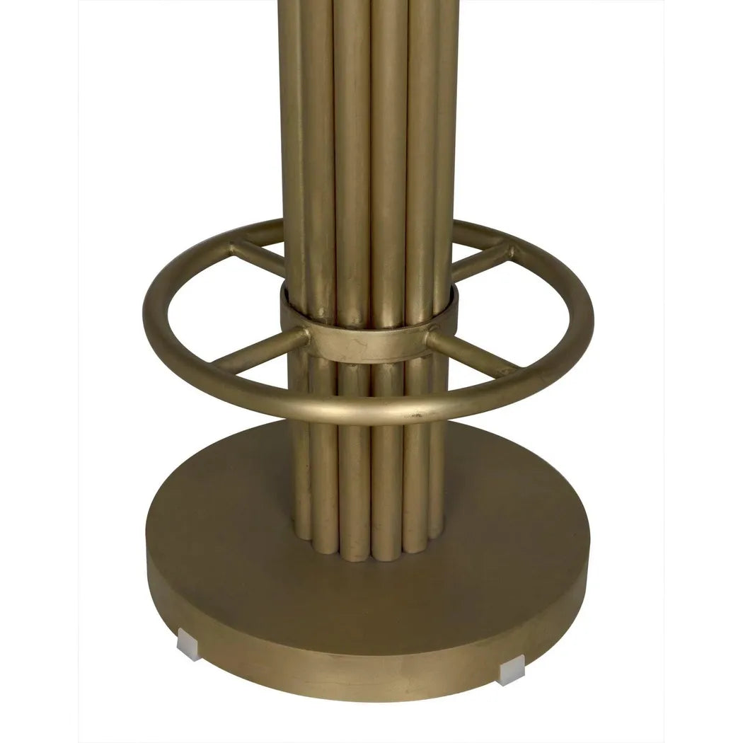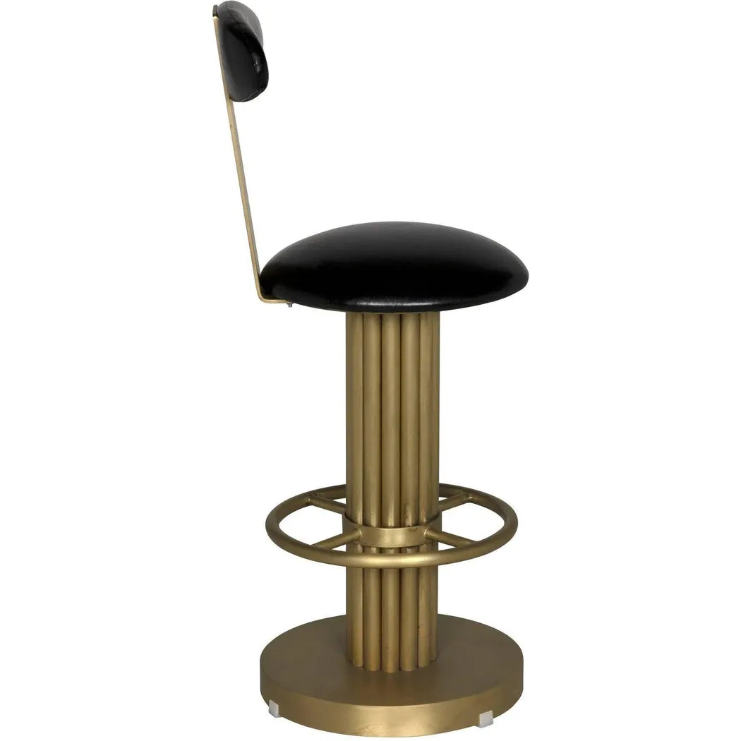 Elevate your counter or bar space with the stunning Sedes Steel Counter Stool. Crafted with industrial strength steel and an antiqued brass finish, these stools offer both style and durability. The black leather upholstery adds a touch of luxury, while the swivel feature provides convenience. Perfect for any art-deco inspired design. Available in either counter or bar heights, the Sedes stools are truly eye-catching. Their design, inspired by the art-deco era, is evident, but their exceptional construction and clever design warrant closer inspection. Made with durable industrial strength steel and finished in a refined antiqued brass, these stools exude both style and function.