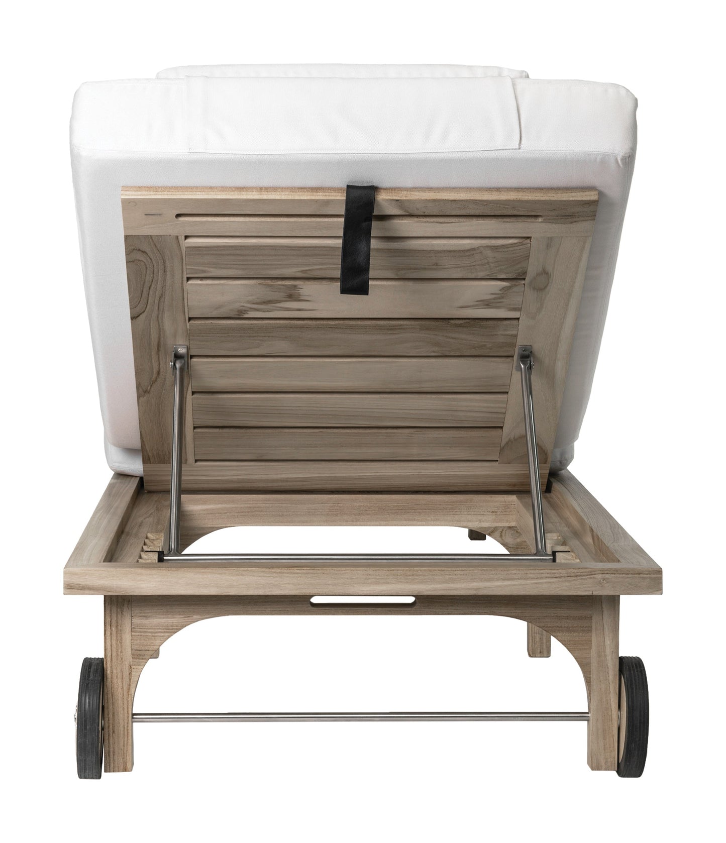 Crafted for those who value quality and sustainability, this chaise set features durable teak and weather-resistant fabrics. The custom Quick-Dry foam cushions provide bespoke comfort, making it ideal for lounging by the pool. The inclusion of a seat/back cushion with an attached neck pillow ensures added relaxation. With an adjustable backrest and two wheels for mobility, this chaise offers both practicality and style, making it a perfect addition to any serene outdoor setting.