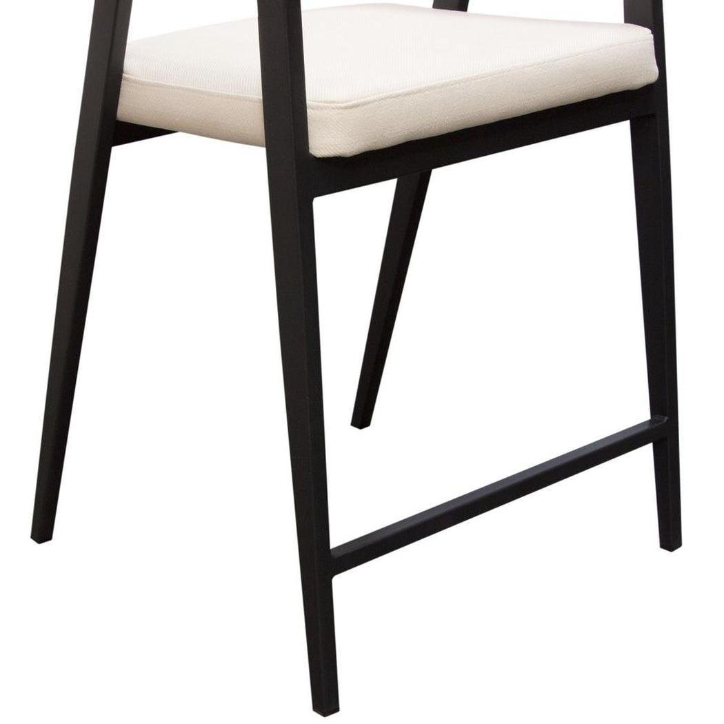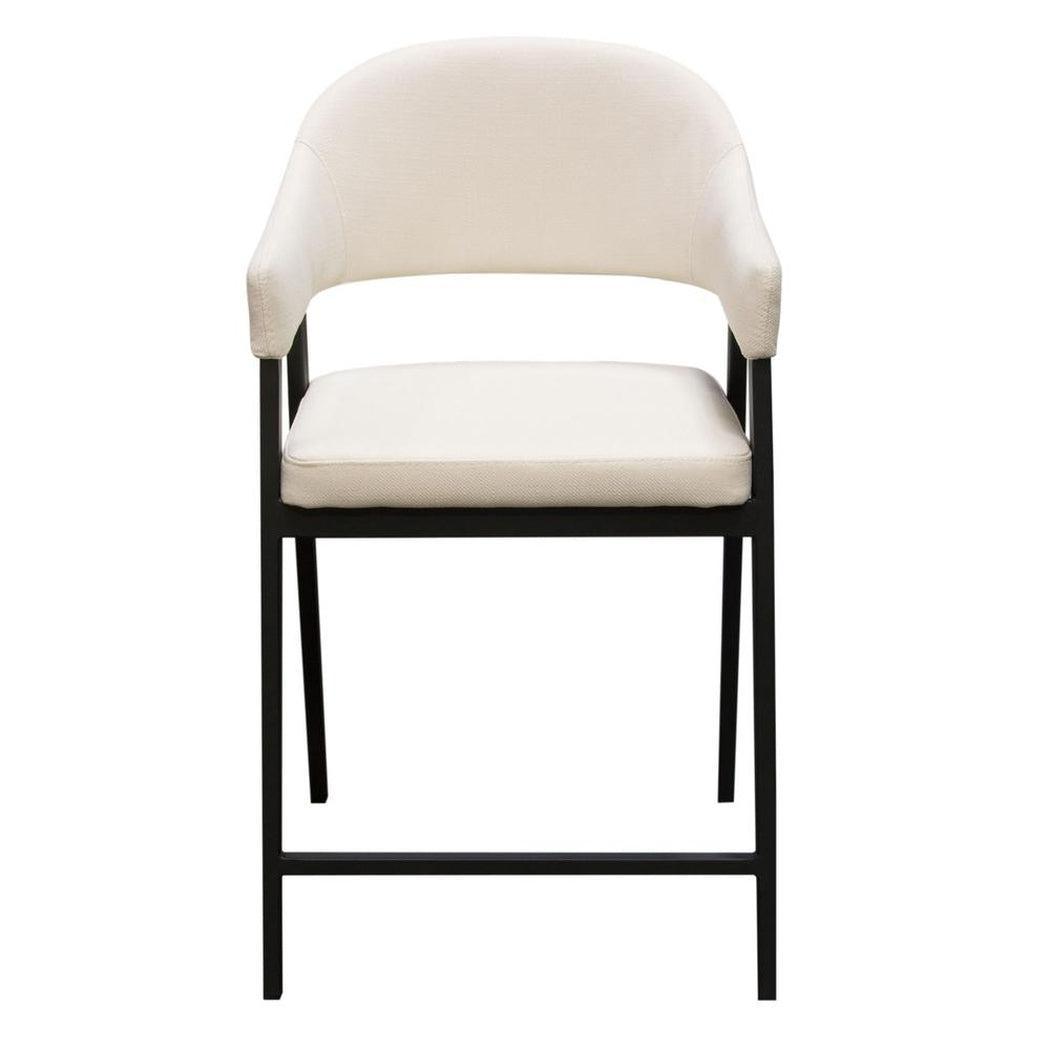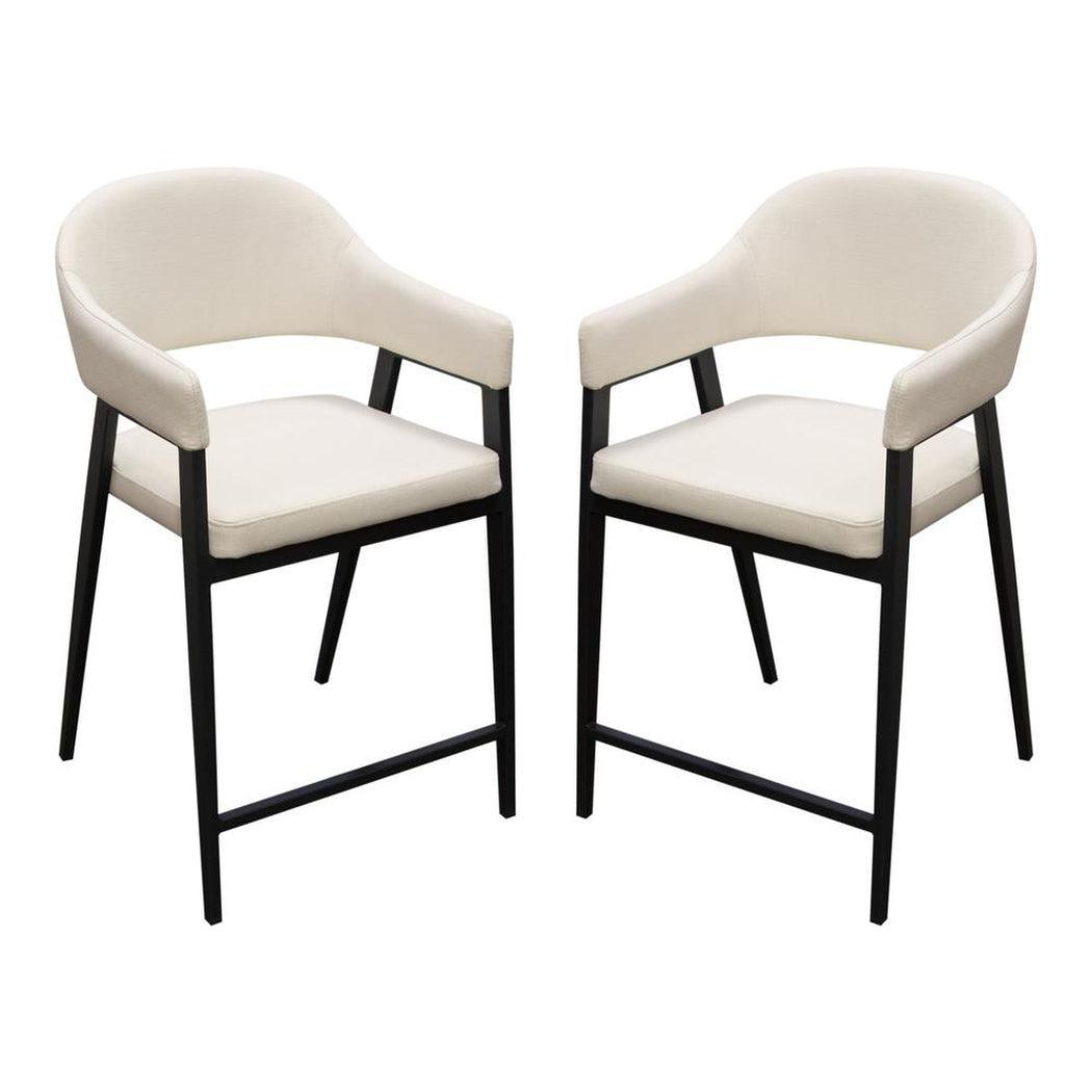 Adorned with a plush Cream polyester fabric, the Adele Counter Chair offers practical and stylish seating for your home's décor. Packaged and Sold in Sets of Two Chairs per Box. The Adele Counter Chair boasts a chic, sophisticated design with unmatched comfort. Enjoy the assurance of a cushioned seat and supportive armrests, all while being supported by a sturdy black powder coated frame.