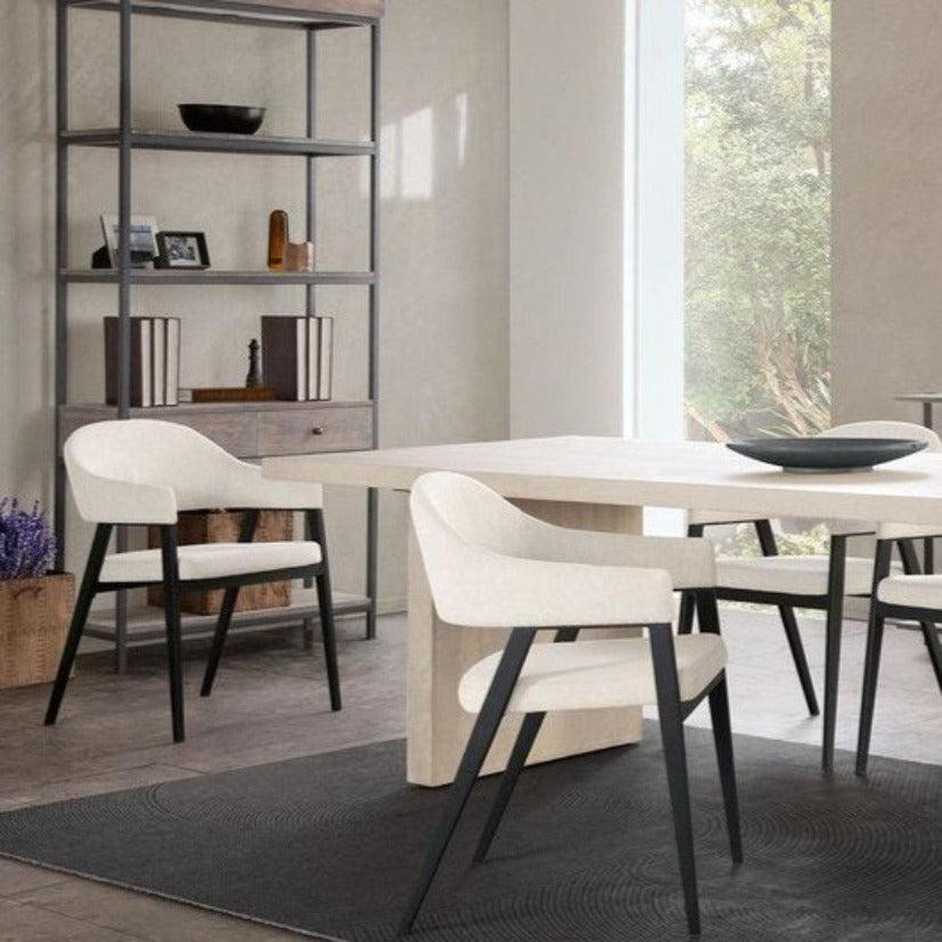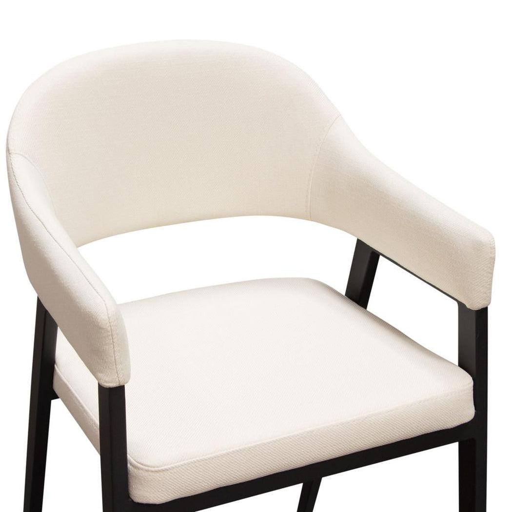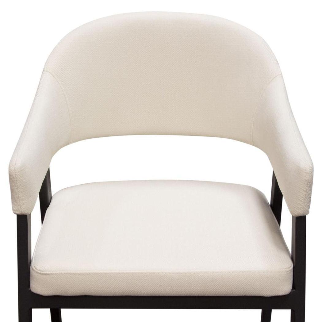 Adorned with a plush Cream polyester fabric, the Adele Counter Chair offers practical and stylish seating for your home's décor. Packaged and Sold in Sets of Two Chairs per Box. The Adele Counter Chair boasts a chic, sophisticated design with unmatched comfort. Enjoy the assurance of a cushioned seat and supportive armrests, all while being supported by a sturdy black powder coated frame.
