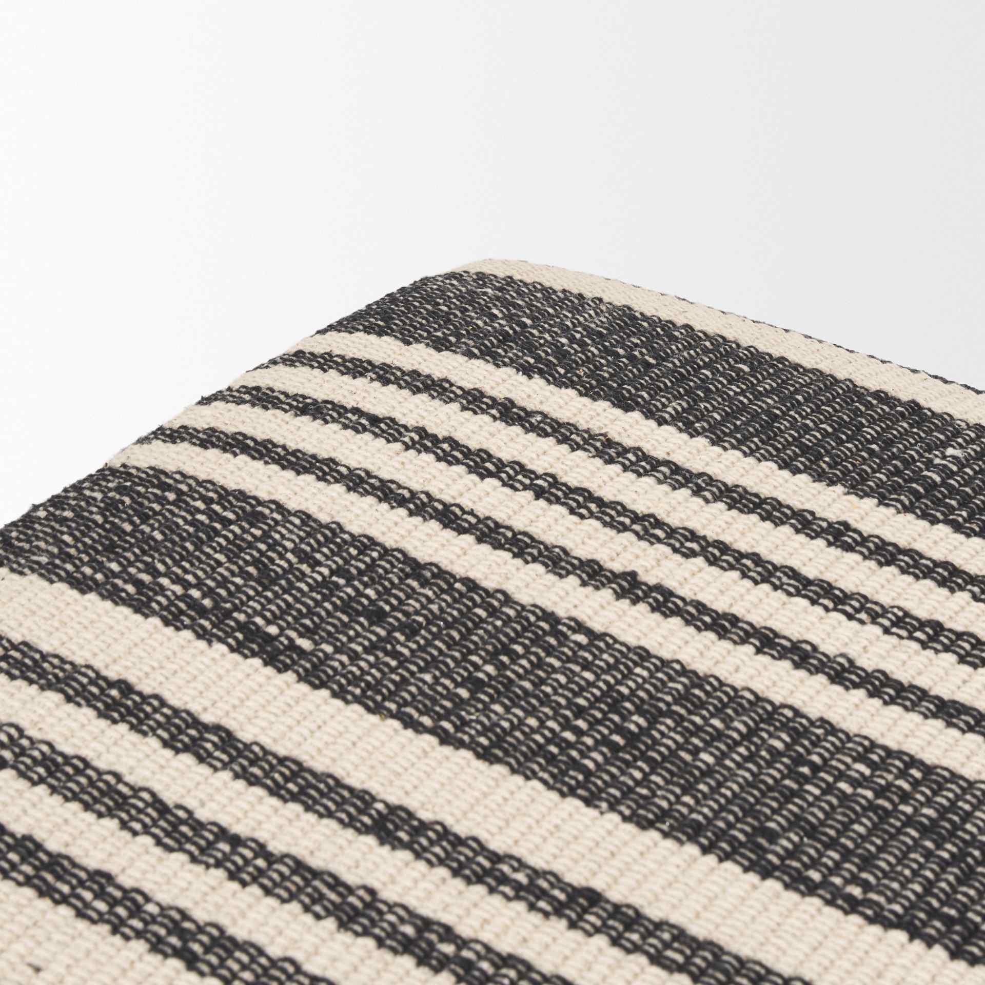 - The horizontal striped patterned upholstery adds a dynamic textural allure while complementing the finishes of its frame.