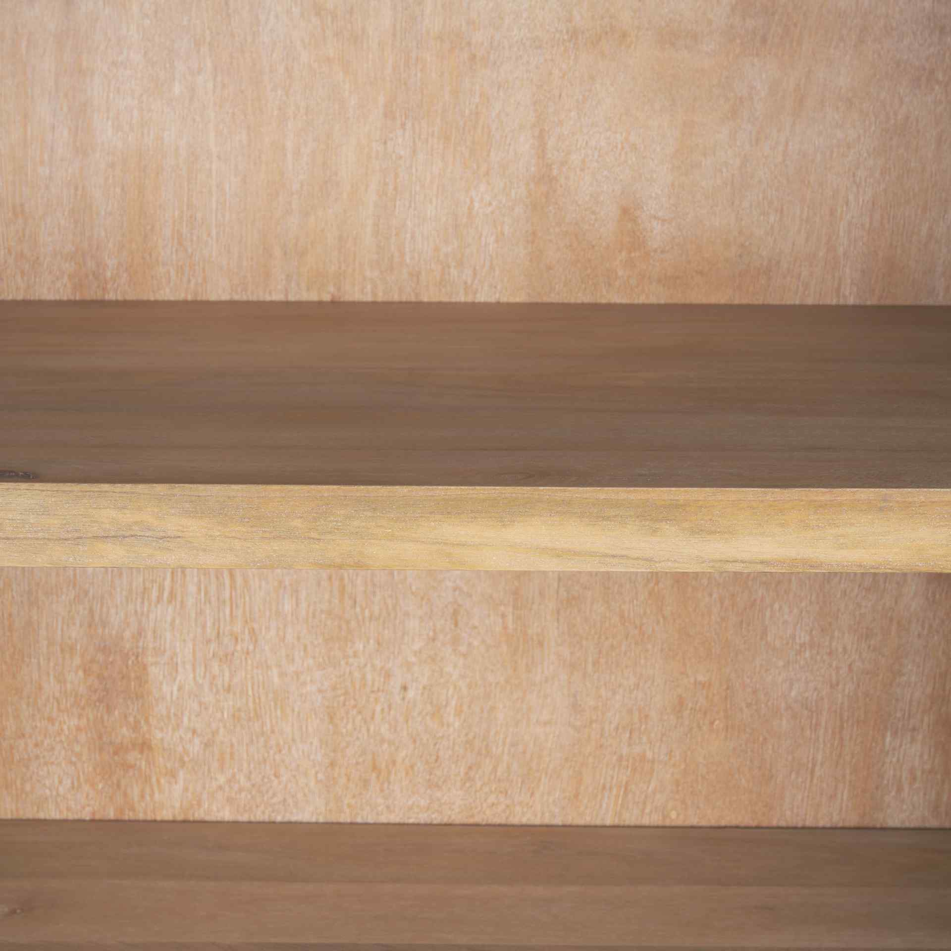 The Sloan Two Doors Wooden Arched Bookcase offers a unique blend of style and functionality. Crafted from solid mango wood, this bookcase features a striking two-toned finish that beautifully contrasts its sleek black metal frame with a warm, natural light brown interior. The arched silhouette adds a bold presence to any room, making it a perfect centerpiece for displaying your cherished items. With black wooden doors and clear glass panels, it brings sophistication to any decor while ensuring your belongings are showcased with elegance.