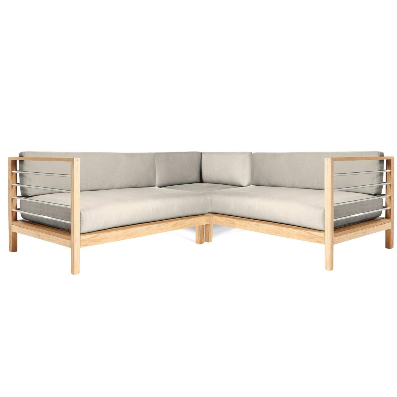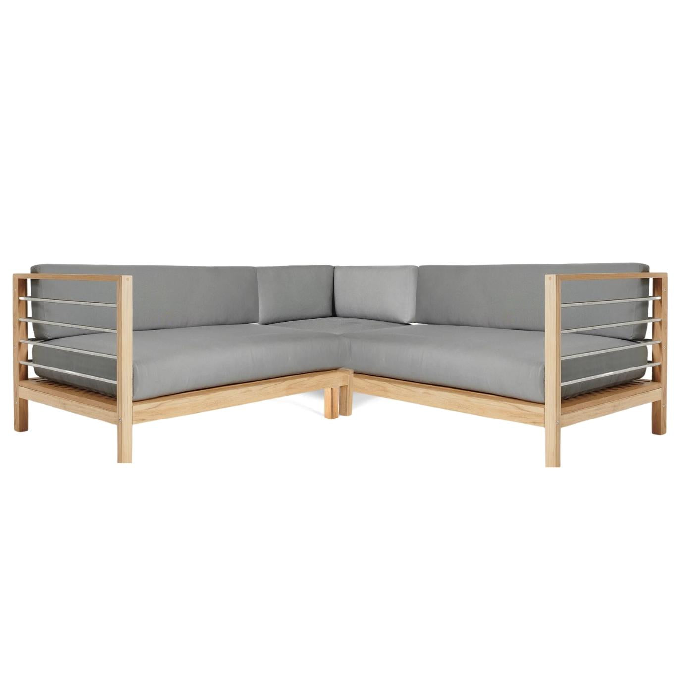 The SoHo 7-Piece Sectional Deep Seating Set brings together clean, modern lines with a thoughtful mix of materials. This set is designed to enhance any outdoor space, offering both style and function. Over time, the teak frames will gracefully age, developing a soft gray patina that beautifully contrasts with the stainless steel elements. The use of high-quality materials ensures durability, while the sleek design maintains an elegant aesthetic. Whether you're hosting a gathering or enjoying a quiet evening, this seating set provides the perfect setting.