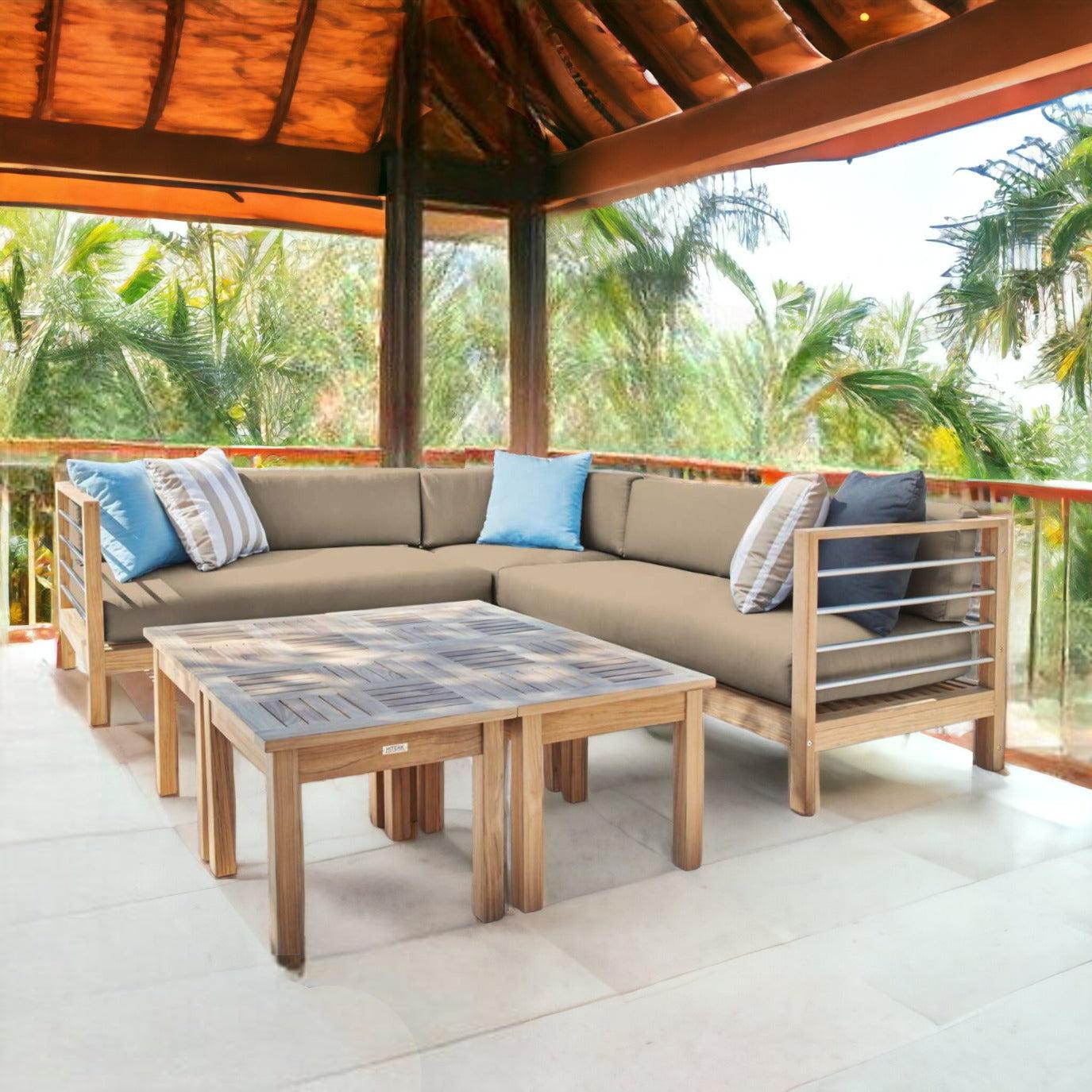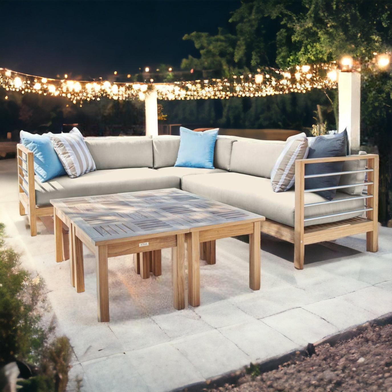 Soho 7-Piece Teak Outdoor Set With Sunbrella Cushions Features: