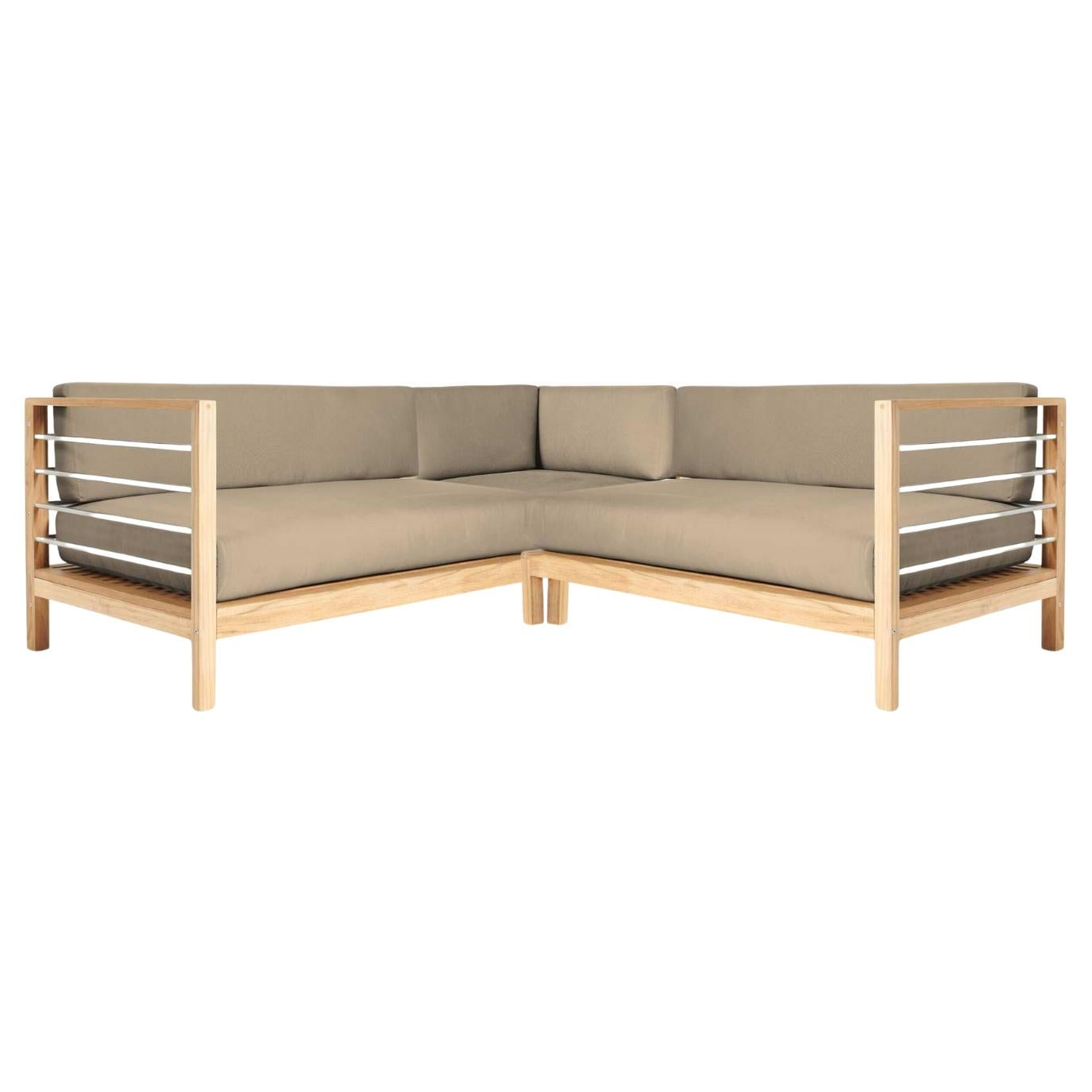 - Materials: Teak Wood, Metal, Sunbrella Fabric, Foam