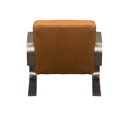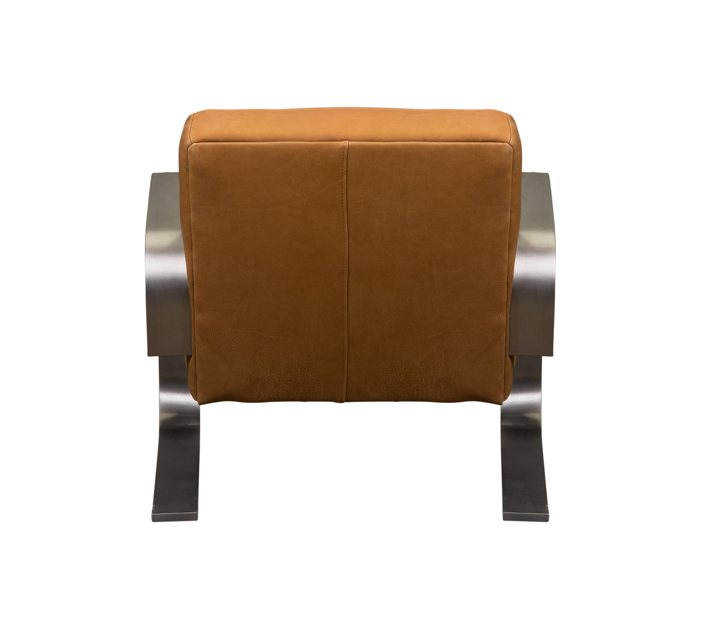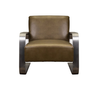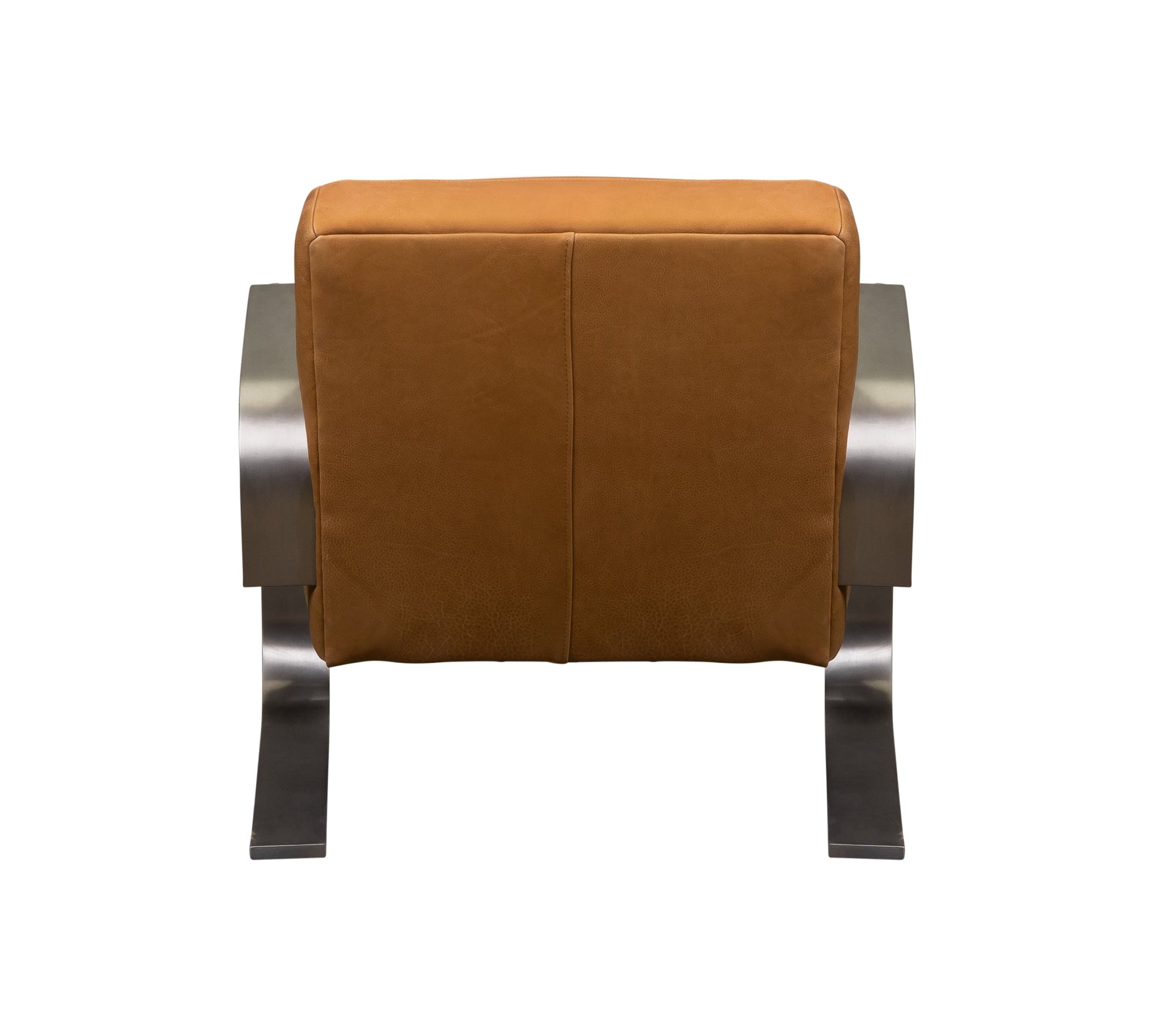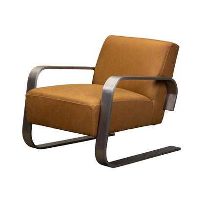 Crafted from high-quality materials such as leather, foam, and wood, the Soho Chair ensures durability and comfort. The foam seat with a fiber overlay construction provides a plush seating experience, while the curved armrests and ample seat dimensions (width, depth, and height) offer comfort for extended sitting. The compact yet stylish design makes it versatile for any room, whether in a living room, office, or bedroom. The chair's sturdy metal frame, combined with the luxurious leather, ensures long-lasting durability, while the arm height adds a touch of support and elegance to the overall design.