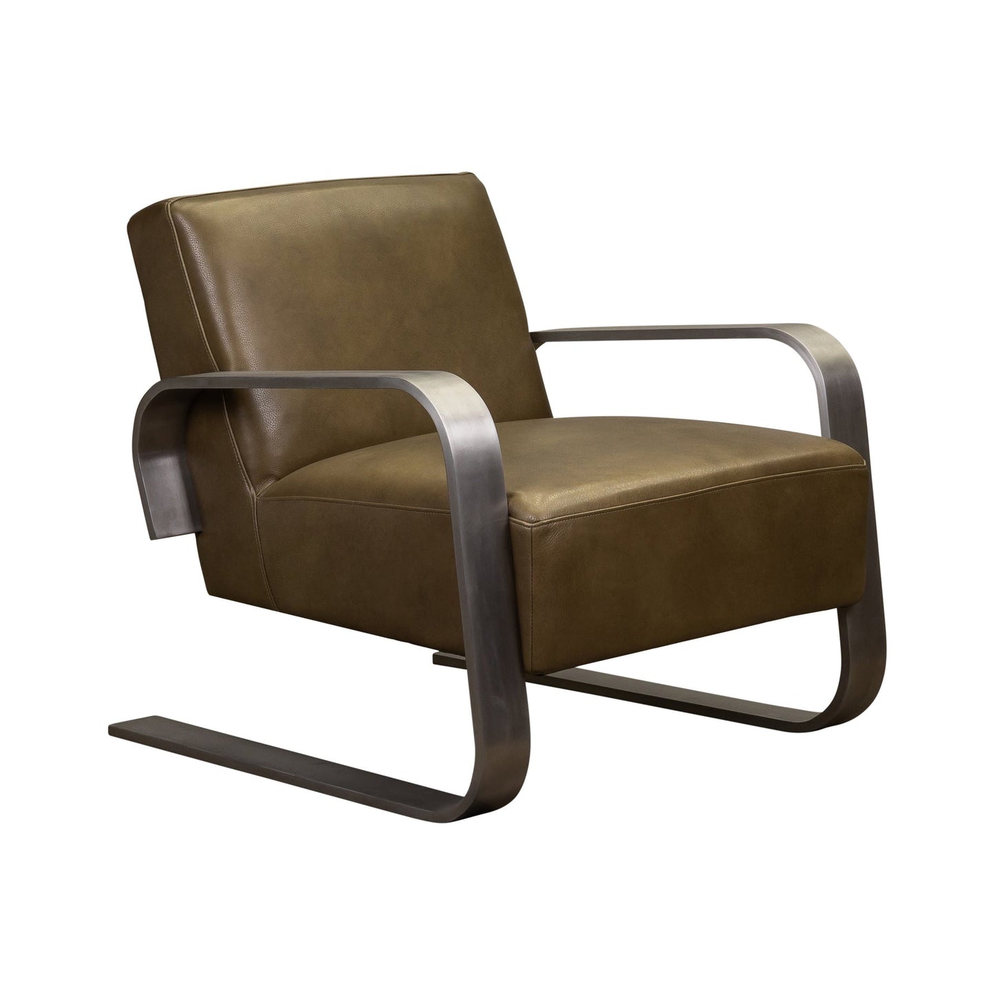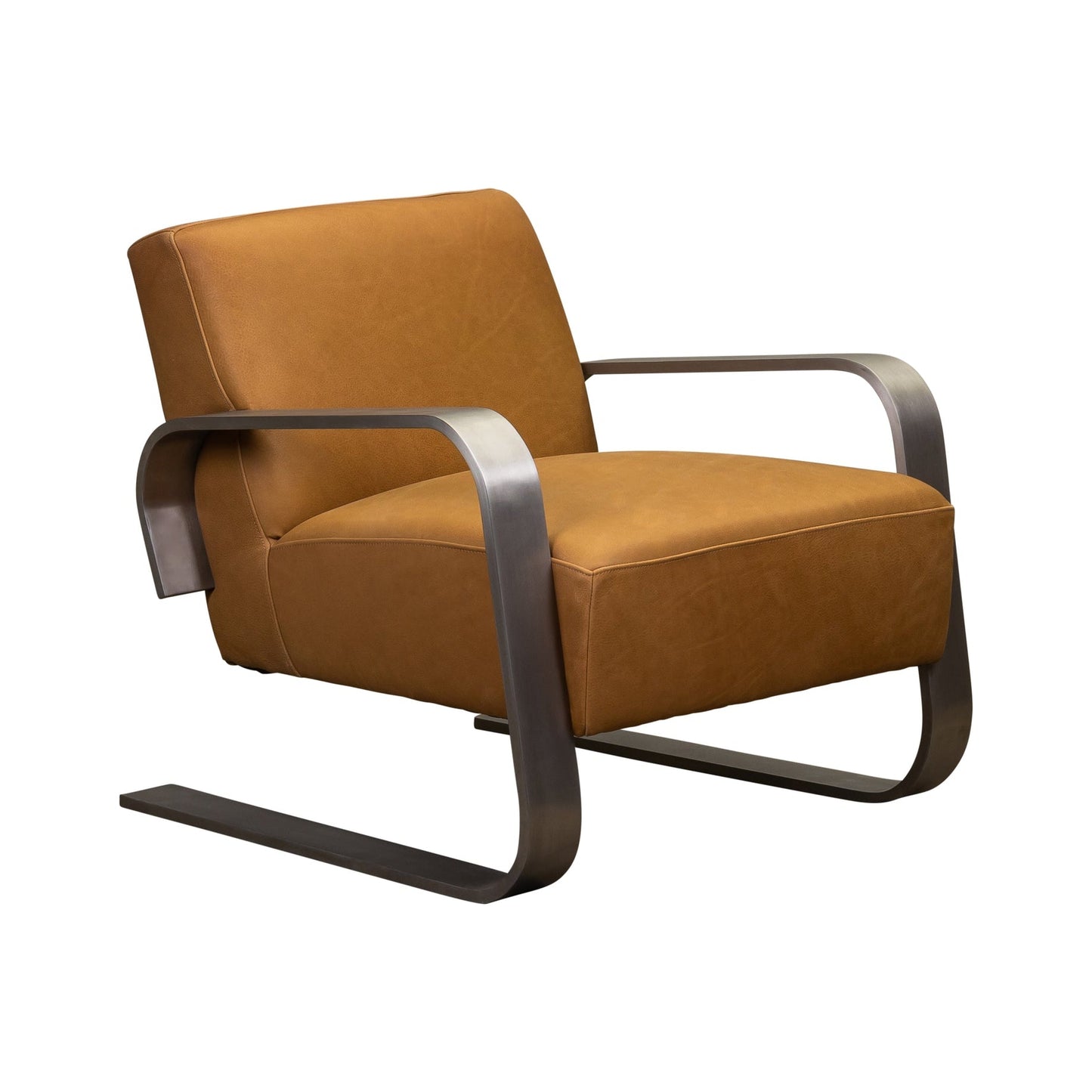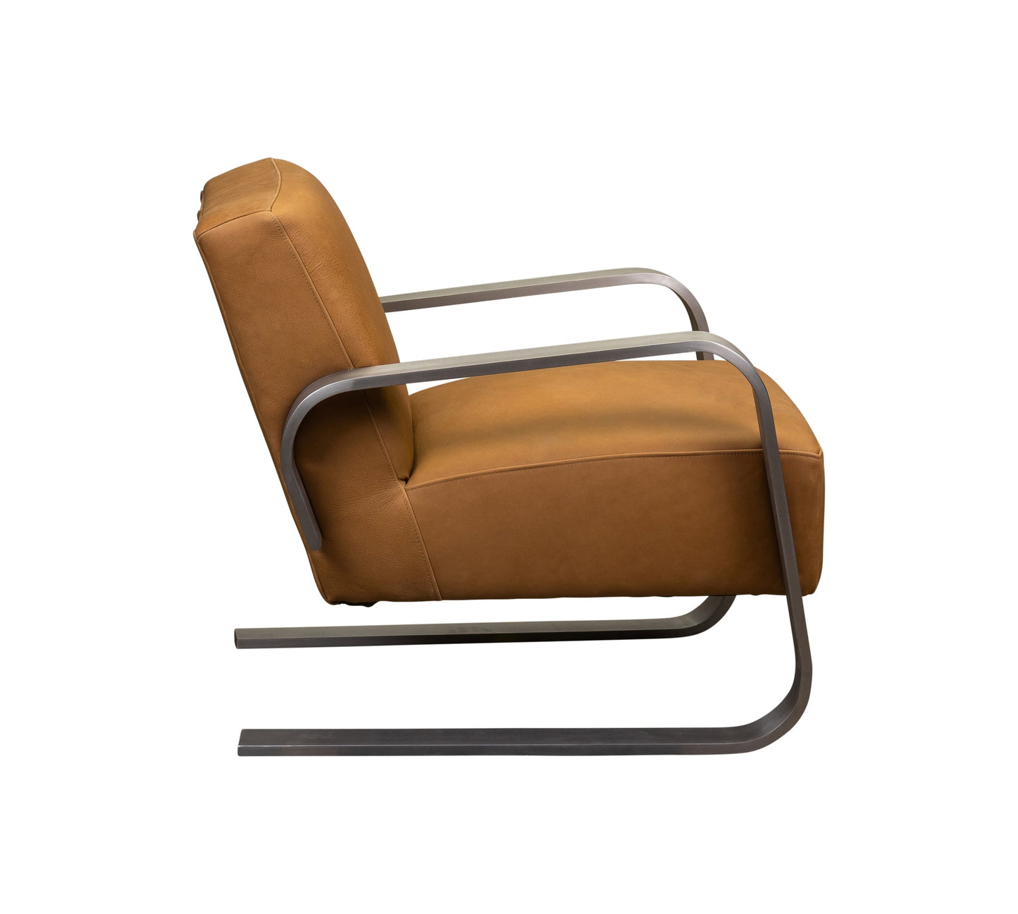 Crafted from high-quality materials such as leather, foam, and wood, the Soho Chair ensures durability and comfort. The foam seat with a fiber overlay construction provides a plush seating experience, while the curved armrests and ample seat dimensions (width, depth, and height) offer comfort for extended sitting. The compact yet stylish design makes it versatile for any room, whether in a living room, office, or bedroom. The chair's sturdy metal frame, combined with the luxurious leather, ensures long-lasting durability, while the arm height adds a touch of support and elegance to the overall design.