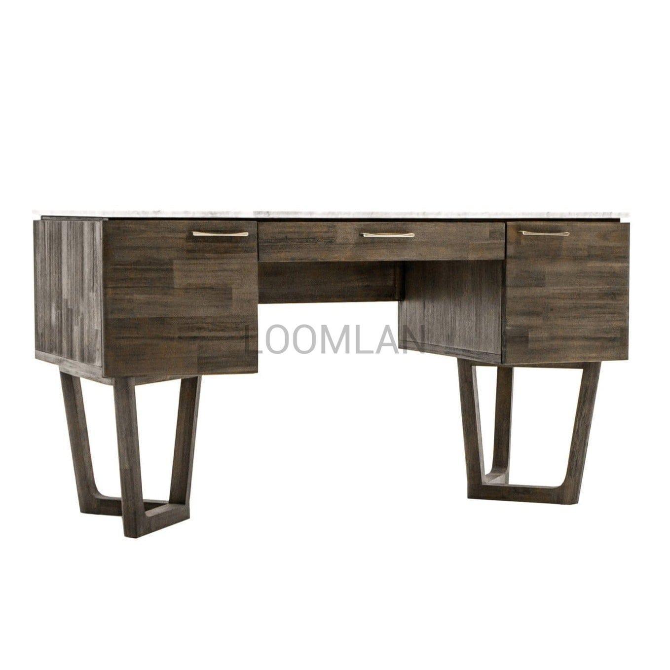 This piece is mid-century modern by design, but not at all limited to any one style. Each piece boasts an Italian Carrara Marble top, solid acacia frame, and unique outward V-shaped base. Take a risk with this bold and versatile mid-century modern desk, designed to fit any style. It's crafted with a stunning Italian Carrara Marble top, sturdy solid acacia frame, and a one-of-a-kind outward V-shaped base that commands attention.