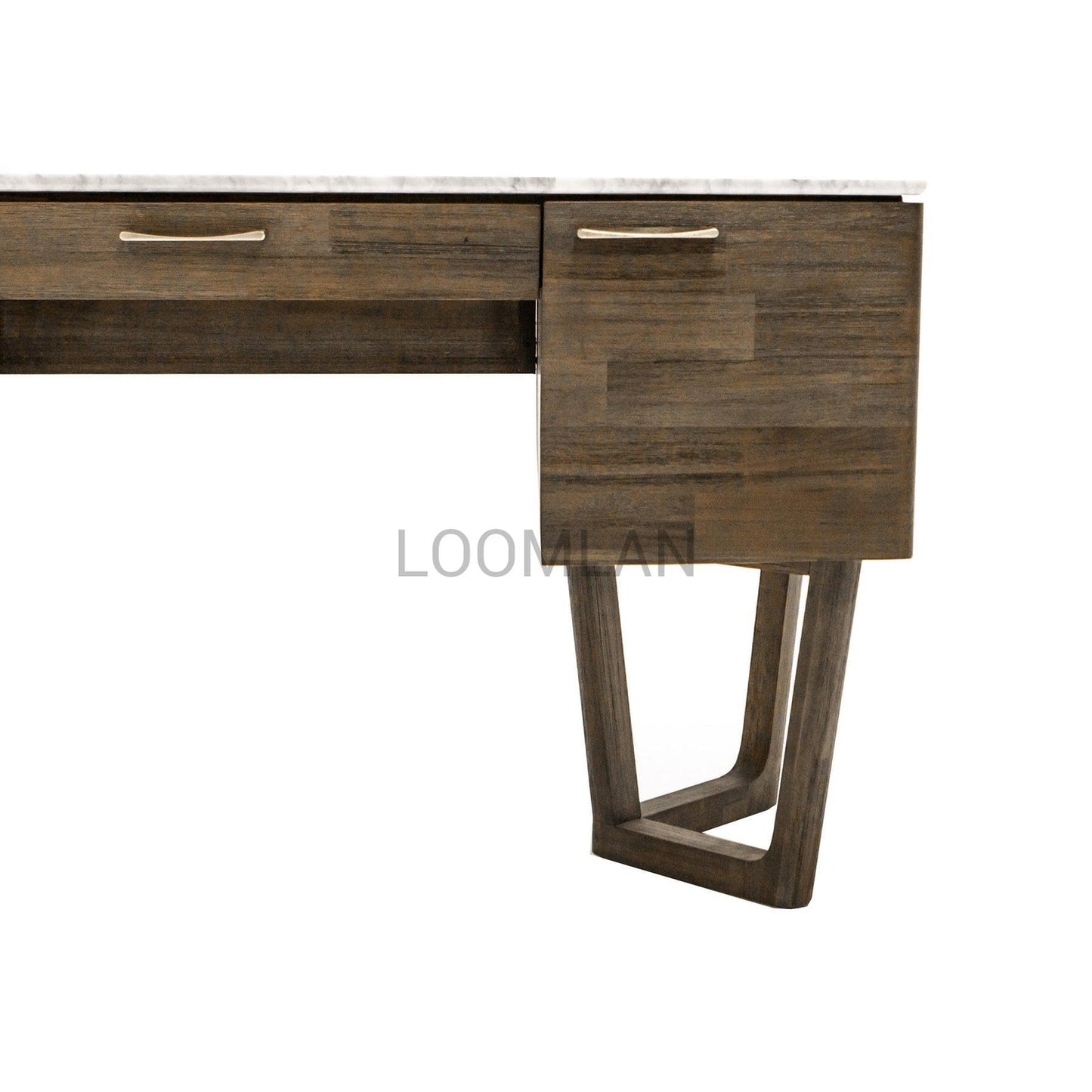 Solid Wood and Carrera Marble Mid-Century Desk Aura Writing Desk Features: