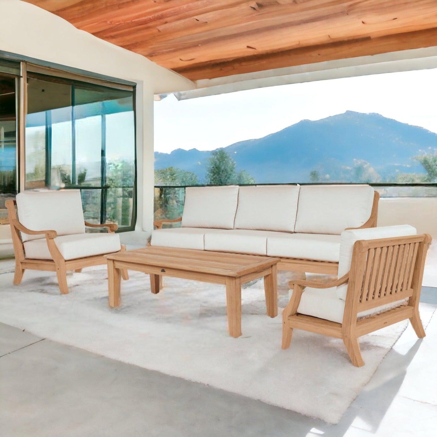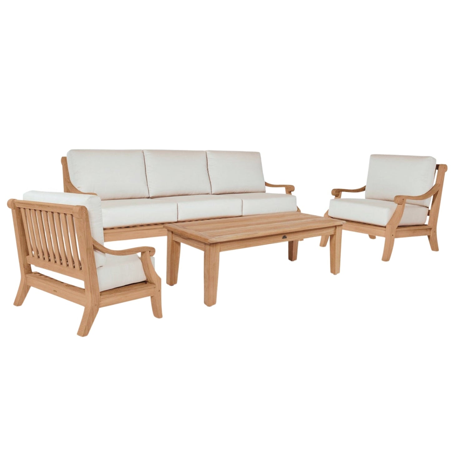 Aalto Teak Patio Deep Sofa Set with Sunbrella 4PC
