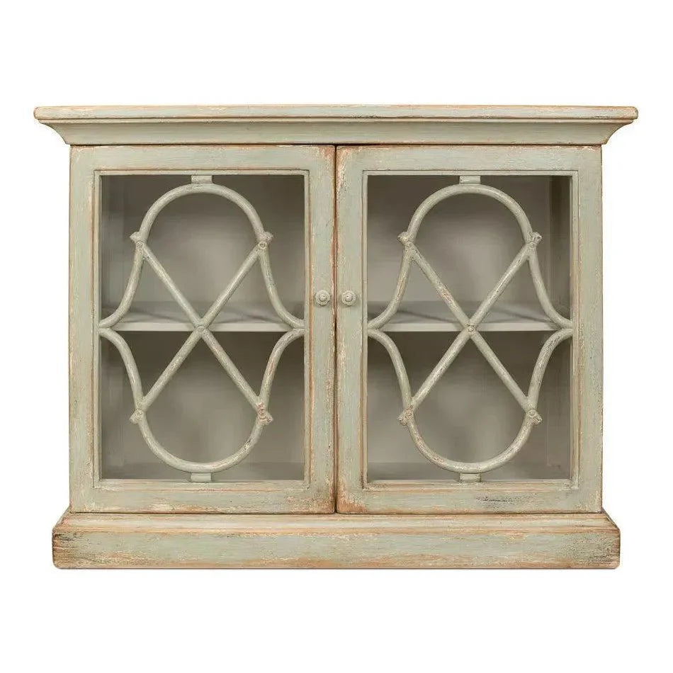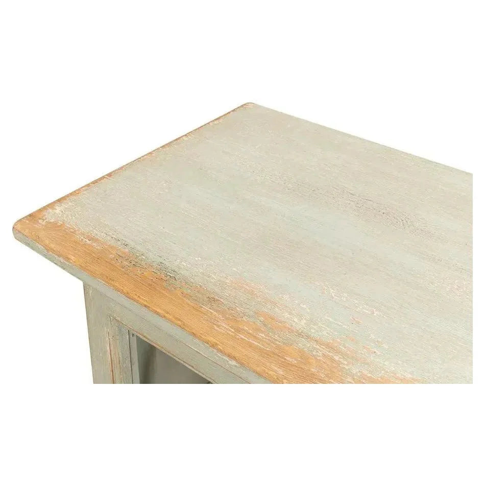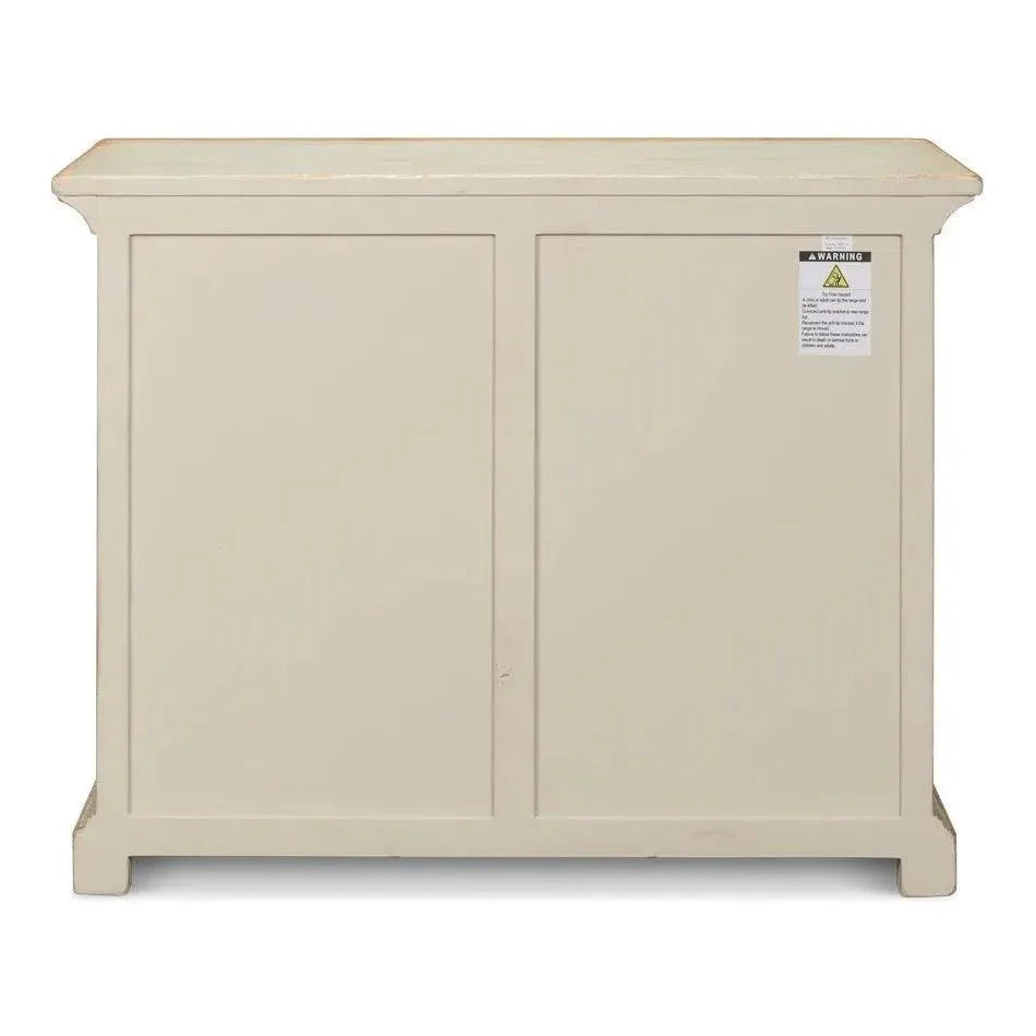 A soft greenish-grey Sage and Antique White finish adds inviting weathered color. Part of the Sonya collection, this artful chest combines cottage charm with eco-friendly sustainability.