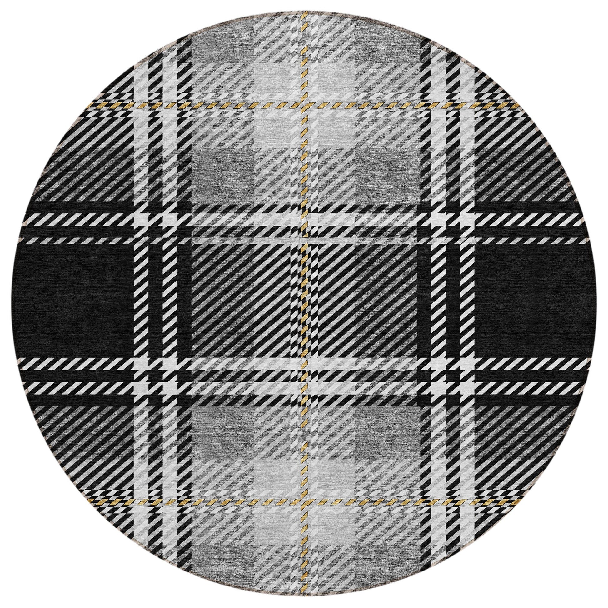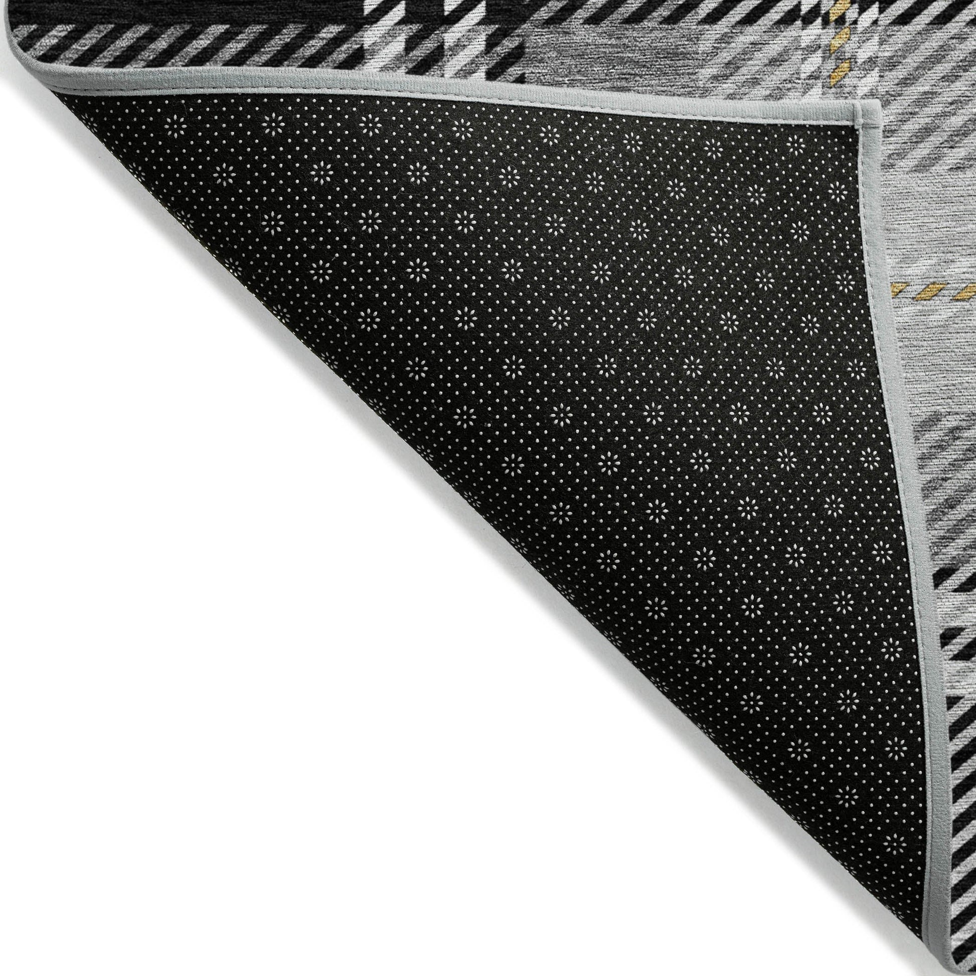 The Spiral Whispers Black Washable Indoor-Outdoor Rug brings a classic touch to any area with its iconic plaid pattern. This rug is ideal for both indoor and outdoor use, making it versatile for various settings. Its ultra-thin profile ensures practicality and ease of maintenance. Made from 100% polyester, it is designed to withstand sunlight, though best placed in covered areas for color retention. This rug is machine-washable, perfect for families and pet owners. Enjoy the added safety of a non-skid backing, while its quick-drying ability makes it a convenient addition to any home.