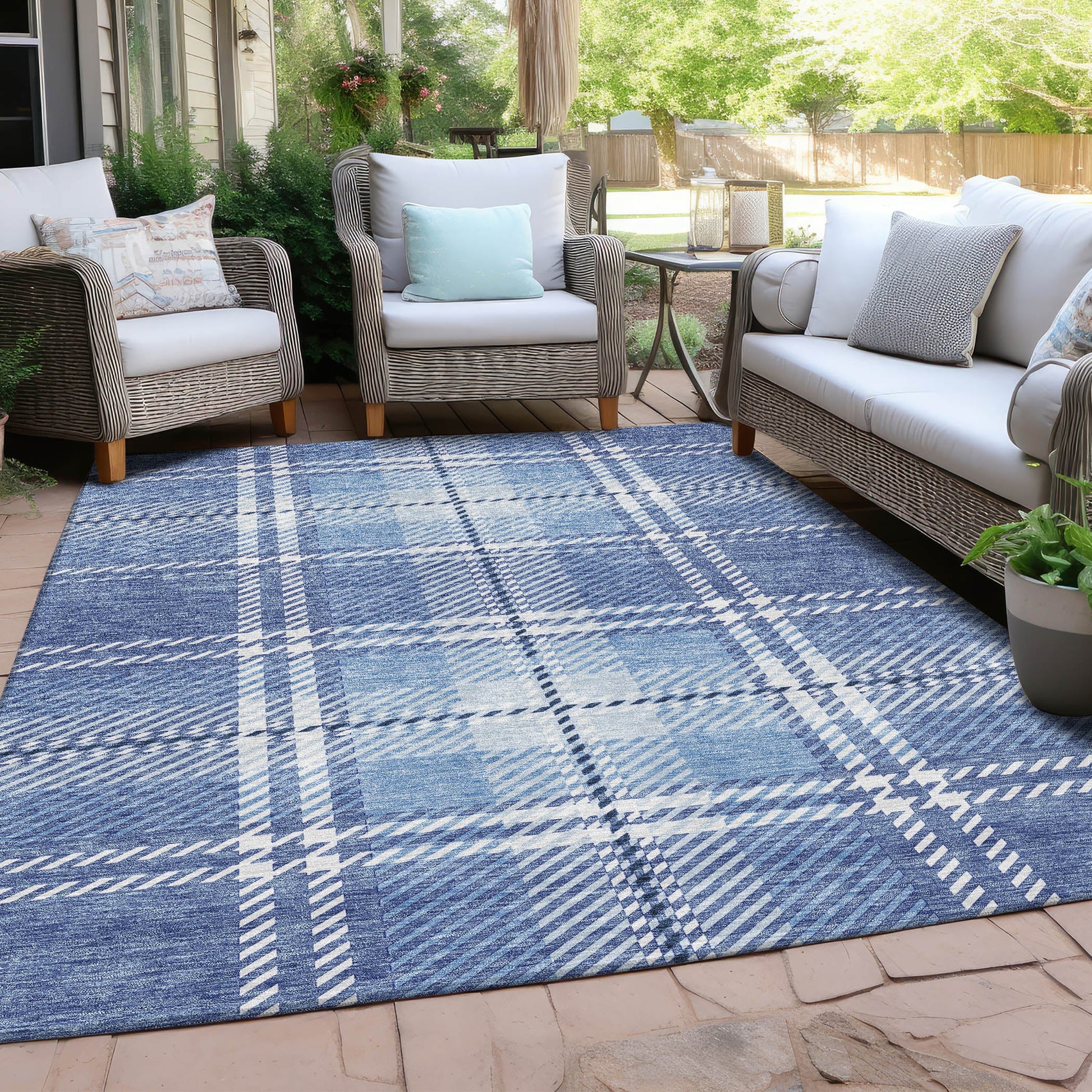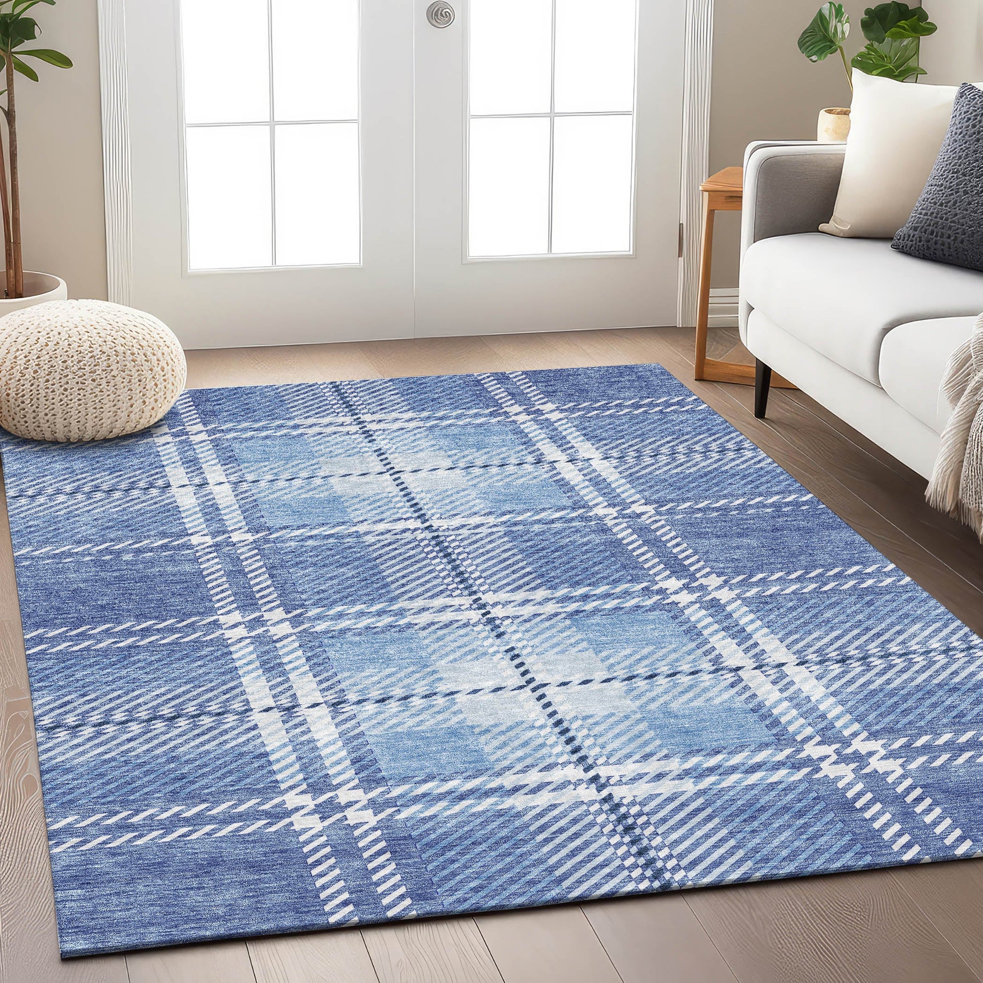 Bring classic refinement to your space with this stylish area rug. Its unique plaid pattern, crafted with horizontal and vertical lines, adds a touch of elegance to any room. Made from 100% polyester, this rug is designed to last, whether indoors or outdoors. The UV-stabilized material ensures it stays vibrant, even in the sun. It's ultra-thin, making it ideal for homes with family and pets. Plus, it's machine washable, so cleaning is a breeze. Whether you're hosting guests or enjoying a quiet night in, this rug enhances any setting with its timeless design and practical features.