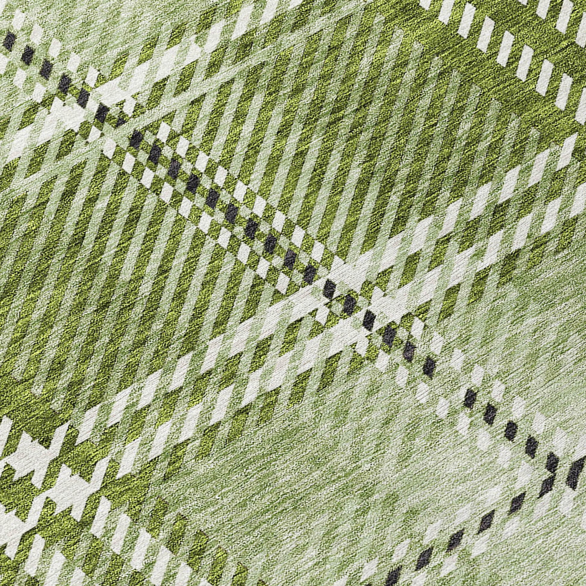 Transform your living space with the Spiral Whispers Green Washable UV-Stabilized Rug. Its elegant plaid pattern, formed by the interplay of horizontal and vertical lines, brings a timeless charm to any setting. This rug is crafted from 100% polyester, ensuring durability and softness underfoot. Designed for both indoor and outdoor use, it features UV stabilization, making it resistant to fading even in sunny spots. The ultra-thin profile and non-skid backing add practicality, while its machine-washable nature makes cleaning a breeze. Ideal for busy homes with kids and pets, this rug is both functional and stylish, enhancing any room effortlessly.