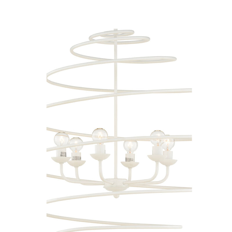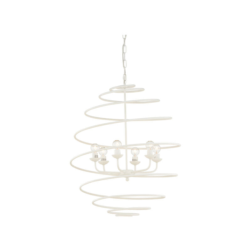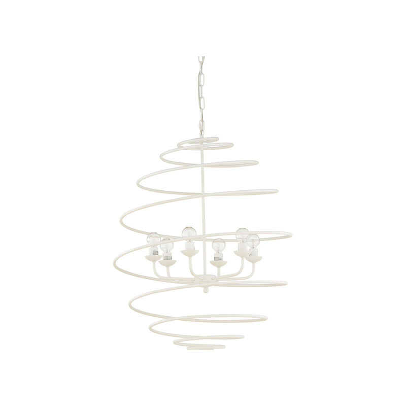 The Spyral Chandelier offers a unique twist on a classic design, making it a standout piece for any room. Crafted in Italy, this chandelier features six bulbs encased in a three-dimensional circular metal frame. Its matte white finish adds a touch of elegance and sophistication, blending seamlessly with various decor styles. Whether you place it in a dining area or a living room, the Spyral Chandelier brings a warm and inviting glow, creating an atmosphere that is both stylish and welcoming. This chandelier is part of the Chelsea House collection, known for its attention to detail and quality craftsmanship. The Spyral Chandelier is not just a lighting fixture; it is a statement piece that reflects a blend of traditional charm and modern flair.