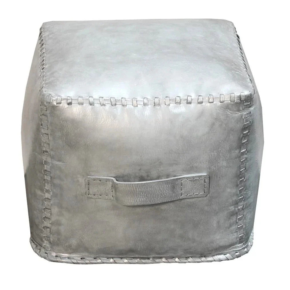 Enhance your home decor with our Square Silver Grey Leather Stool Ottoman Celeste. The environmentally friendly vegetal-tanned leather and metallic tone with natural stitching make for a durable and stylish addition to any space. Trust in our high-quality materials for a timeless and eco-friendly upgrade to your home.
