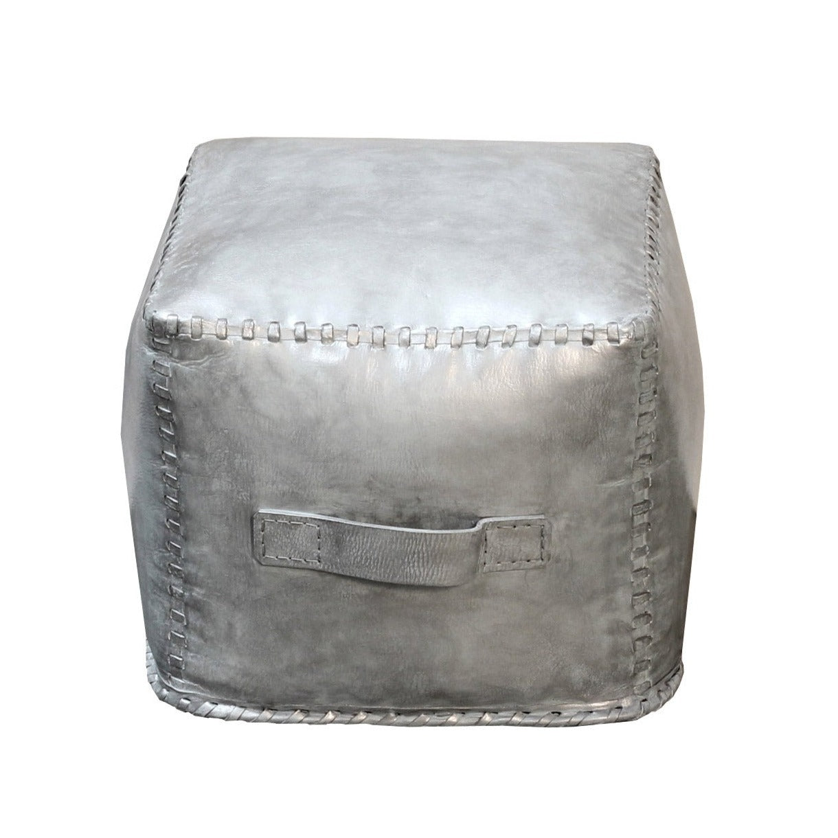 Square Silver Grey Leather Stool Ottoman Celeste Features: