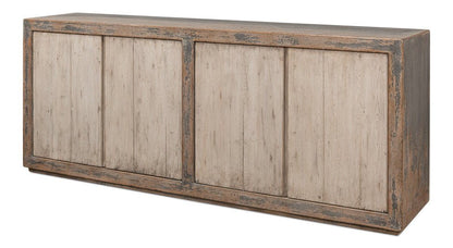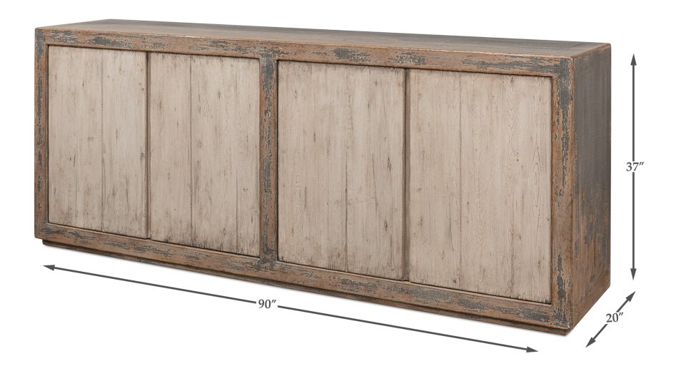The St Martin Sideboard is the perfect blend of style and functionality. With its unique combination of light grey doors and a darker grey frame, it adds a distinctive touch to any room. Crafted from reclaimed pine, this sideboard offers a rustic yet elegant look, making it an ideal choice for those who appreciate transitional design. Its distressed finish enhances its natural beauty, while the beige panels and weathered brown and grey frame ensure it complements a wide range of décor styles.