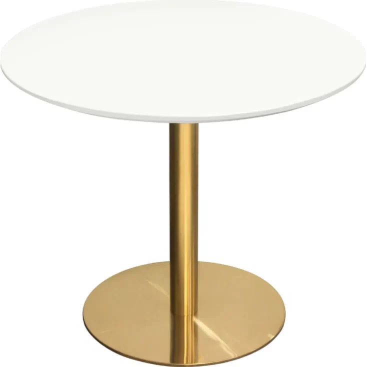 Stella 36" Round Dining Table with White Lacquer Top and Brushed Gold Metal Base Features: