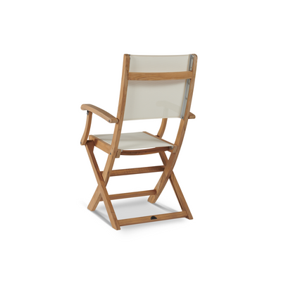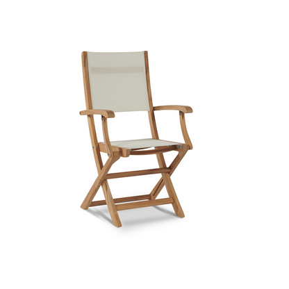 The armchairs offer comfort with their sturdy sling seats and arms. The contemporary design ensures they are both stylish and practical. The table is equipped with a pre-drilled umbrella hole, allowing for shade on sunny days. This set is crafted with marine-grade, rust-resistant stainless steel hardware, adding to its durability and longevity. The hand-sanded finish provides a beautiful light golden hue that naturally ages to a silvery grey if left untreated, adding a touch of elegance to your outdoor setting.