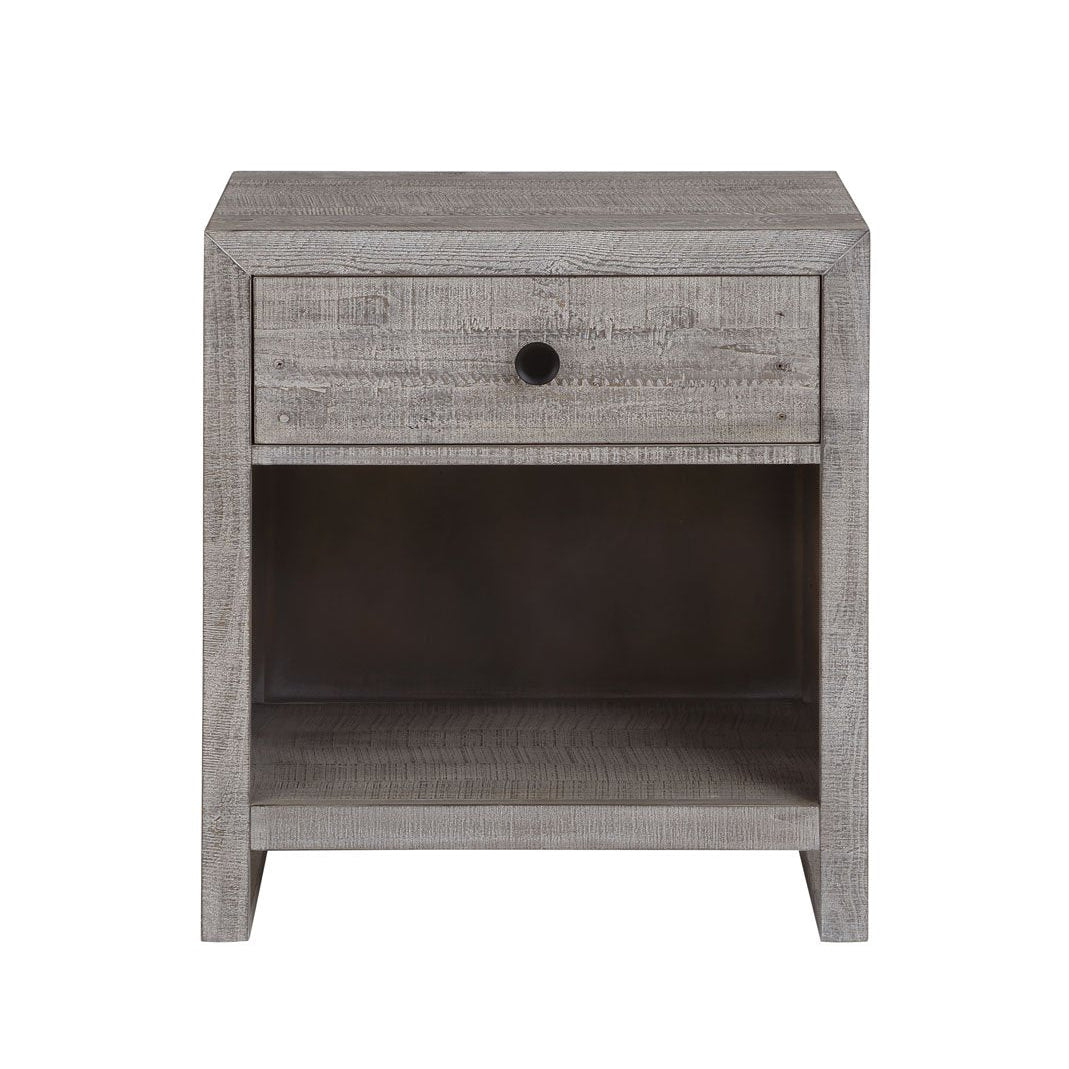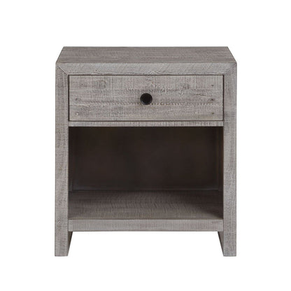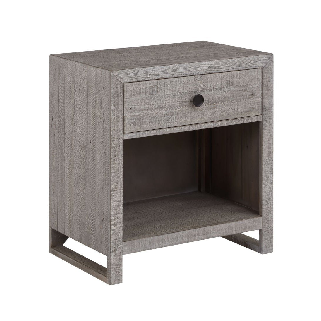 Inspired by modern rustic living, the Studio 20 Nightstand is a testament to thoughtful design and craftsmanship. Crafted from reclaimed solid pine, this piece breathes new life into old materials, making it both eco-friendly and unique. The nightstand showcases a subtle gray finish with a white glaze that highlights the natural grain and imperfections of the wood. This combination of finishes adds a touch of elegance to the rustic charm, making it a versatile addition to any bedroom decor.