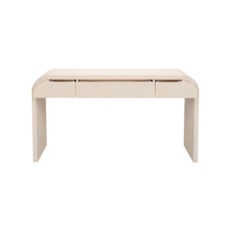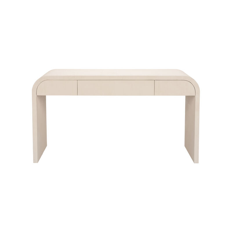The faux shagreen texture of the Summit Desk brings a unique depth and visual interest that enhances any room. The creamy color palette not only invites tranquility but also adds a touch of refinement, creating an atmosphere of calm sophistication. The gracefully curved silhouette of the desk exudes classic charm, making it a versatile piece that complements both traditional and modern interiors. Designed by Elizabeth Wicker, this desk is both a functional workspace and a statement piece. With its modern minimalist design, the Summit Desk offers a rectangular shape with elegantly rounded corners. This thoughtful design ensures a smooth finish that is both pleasing to the eye and to the touch.