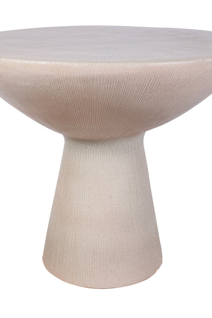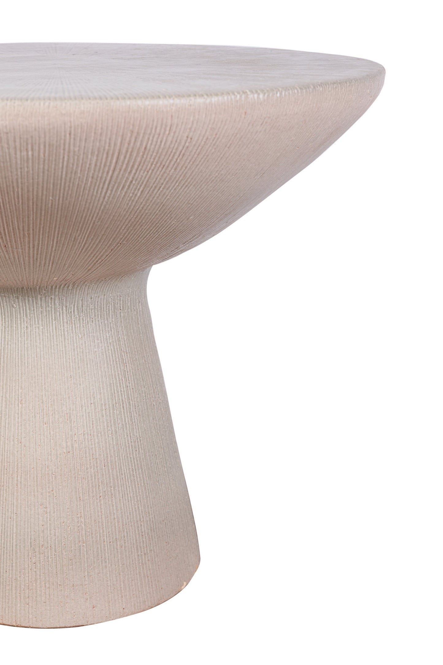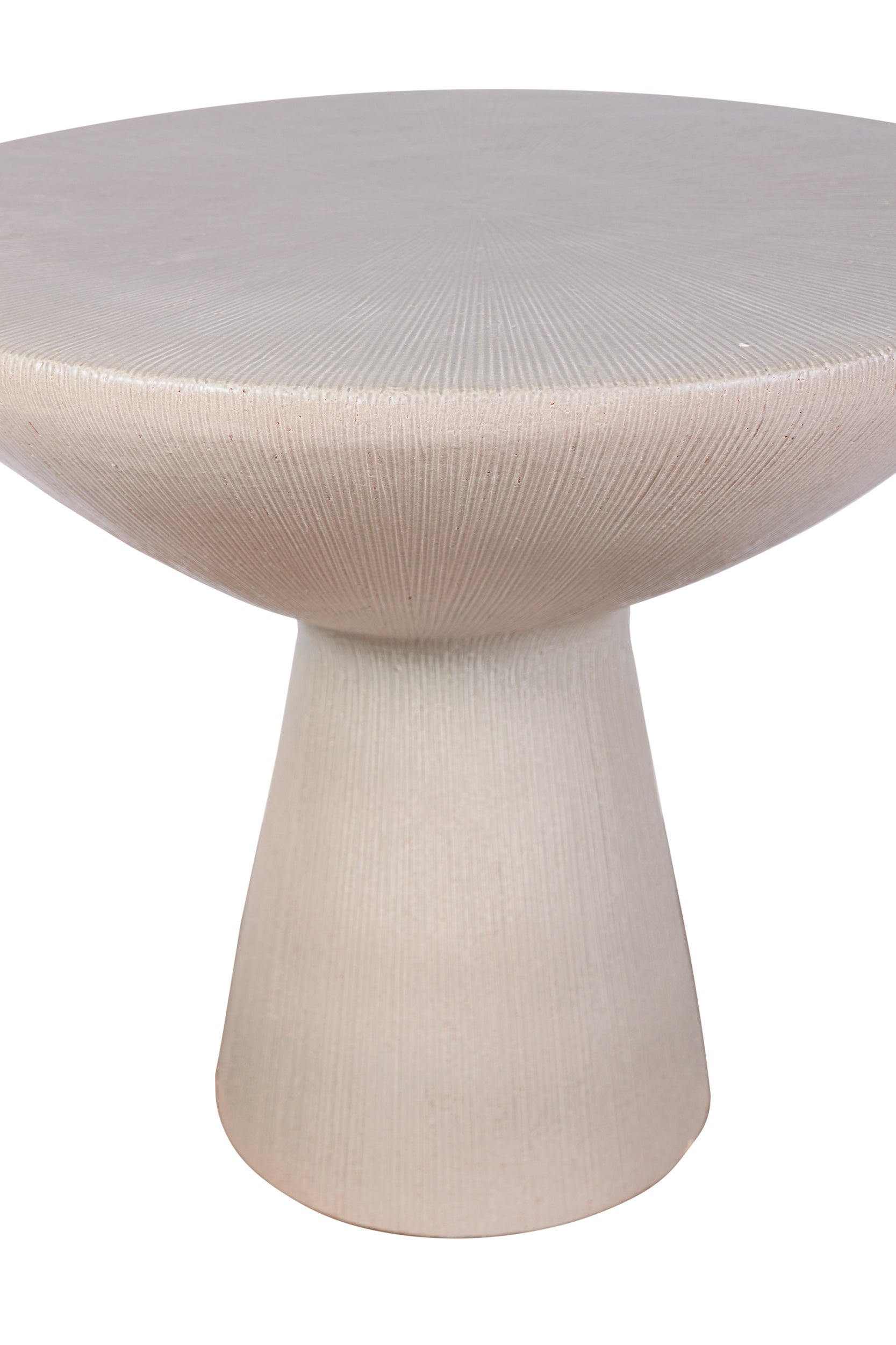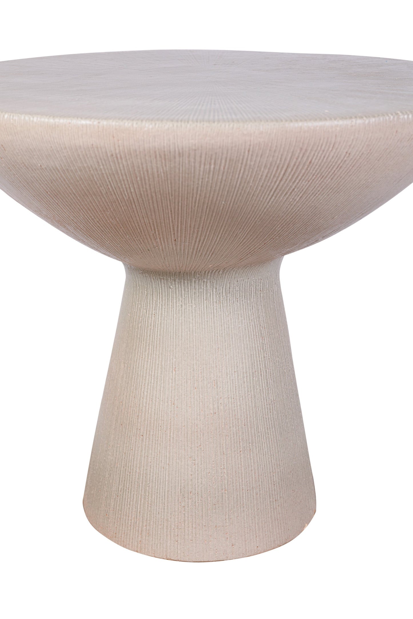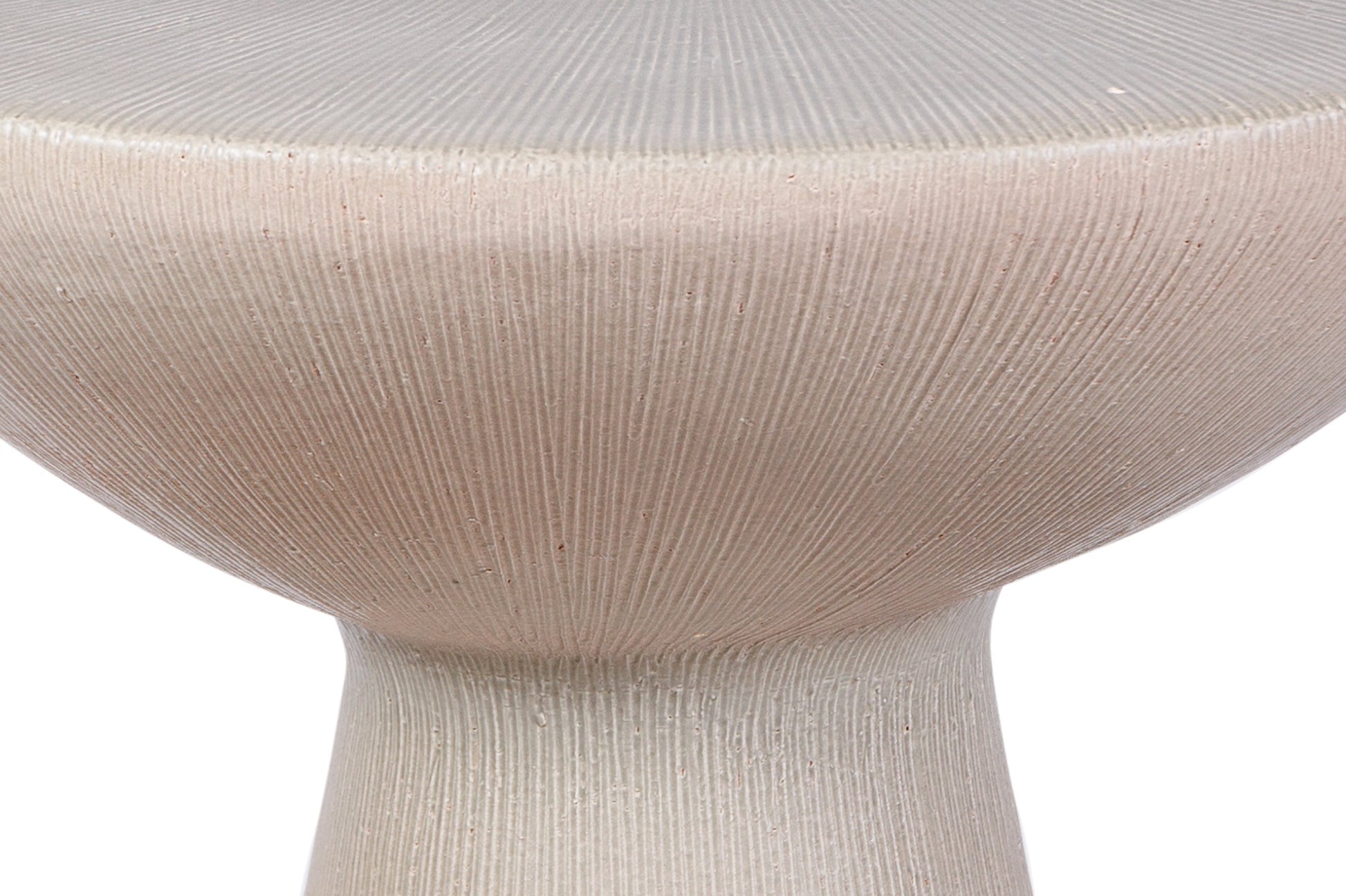The Sunburst Accent Table is a beautifully crafted piece that brings texture, color, and a modern aesthetic to any space. Handmade from glazed ceramic, it showcases a striking sculptural design with a round tabletop and a tapered, ribbed or conical base. Each table features artisanal variations in surface and glaze, making every piece truly unique. Available in emerald texture gloss, olive semi-gloss, and smoke semi-gloss finishes, this accent table blends organic tones with refreshing highlights, effortlessly complementing various decor styles. Its timeless appeal, inspired by natural landscapes and contemporary architecture, makes it a perfect addition to both indoor and outdoor settings.