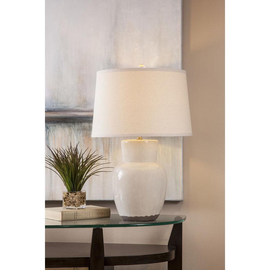 Elevate any room with the timeless elegance of the Keaton table lamp. Its delicate eggshell crackle pattern on a ceramic base exudes sophistication, adding a touch of luxury to any decor. This 27" tall, 8 lb lamp is a perfect addition to your lavish lifestyle. Assembly is required. With its classic shape and everlasting charm, the Keaton table lamp is a must-have for any room's decorative scheme.