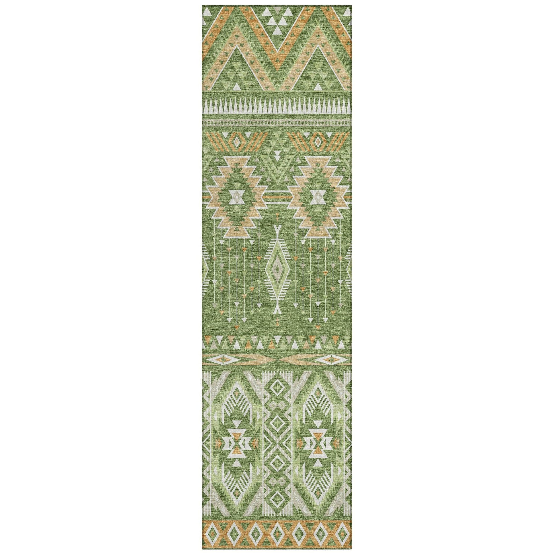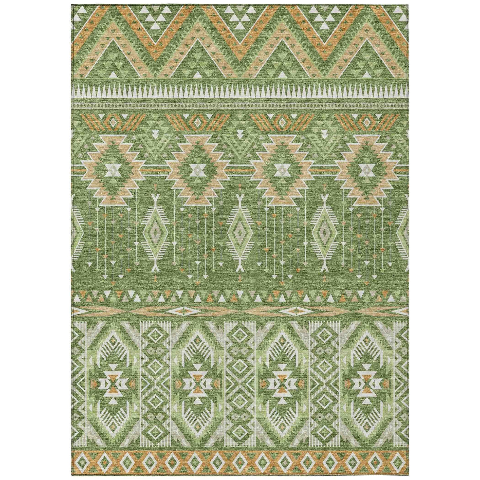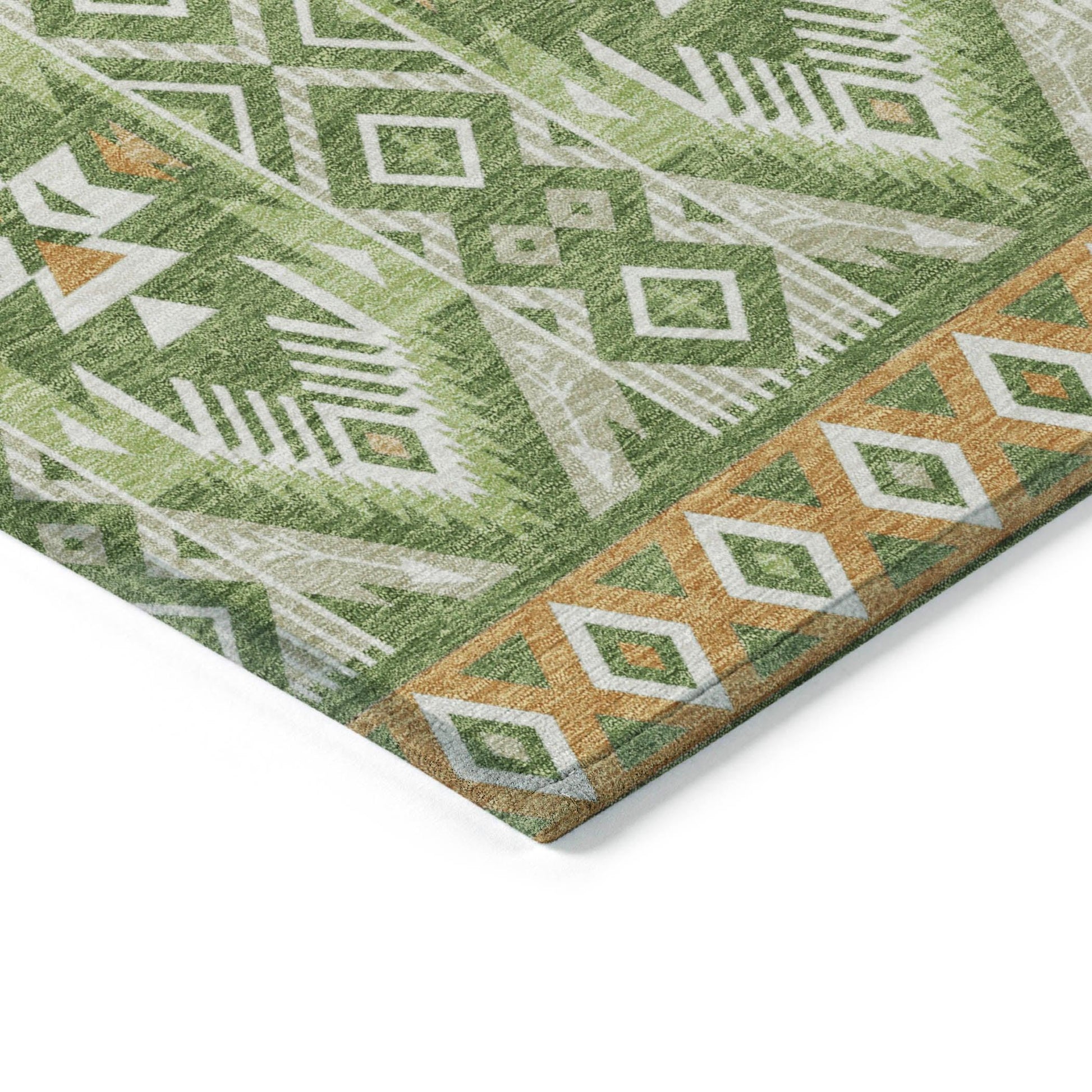Add a captivating touch to any space with this rug's Aztec-inspired design. Its flowing patterns and geometric motifs create an eye-catching focal point in any room. Made from polyester, this rug is as practical as it is stylish. Ideal for both indoor and outdoor use, its UV-stabilized fibers help maintain its vibrant color, even when exposed to sunlight. The rug's green hue complements a variety of decor styles, adding a fresh, natural look to your home.