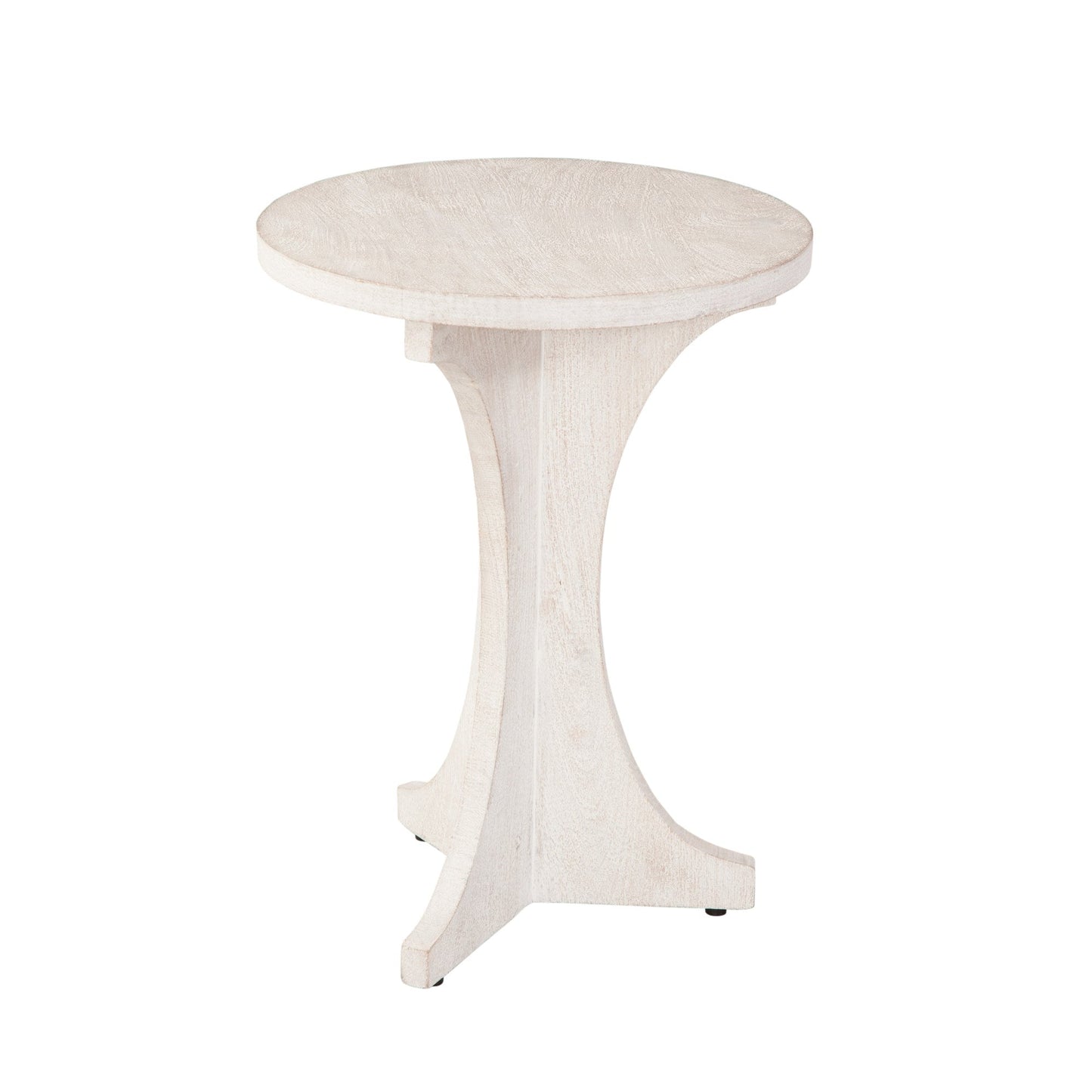 Elevate your décor with the Tait Wood White Round Accent Table. The boho, coastal design style is embodied in the solid mango wood table, featuring a sandblasted finish for a beautifully textured look. Add a touch of adventure to your space with this bold and charming accent table.