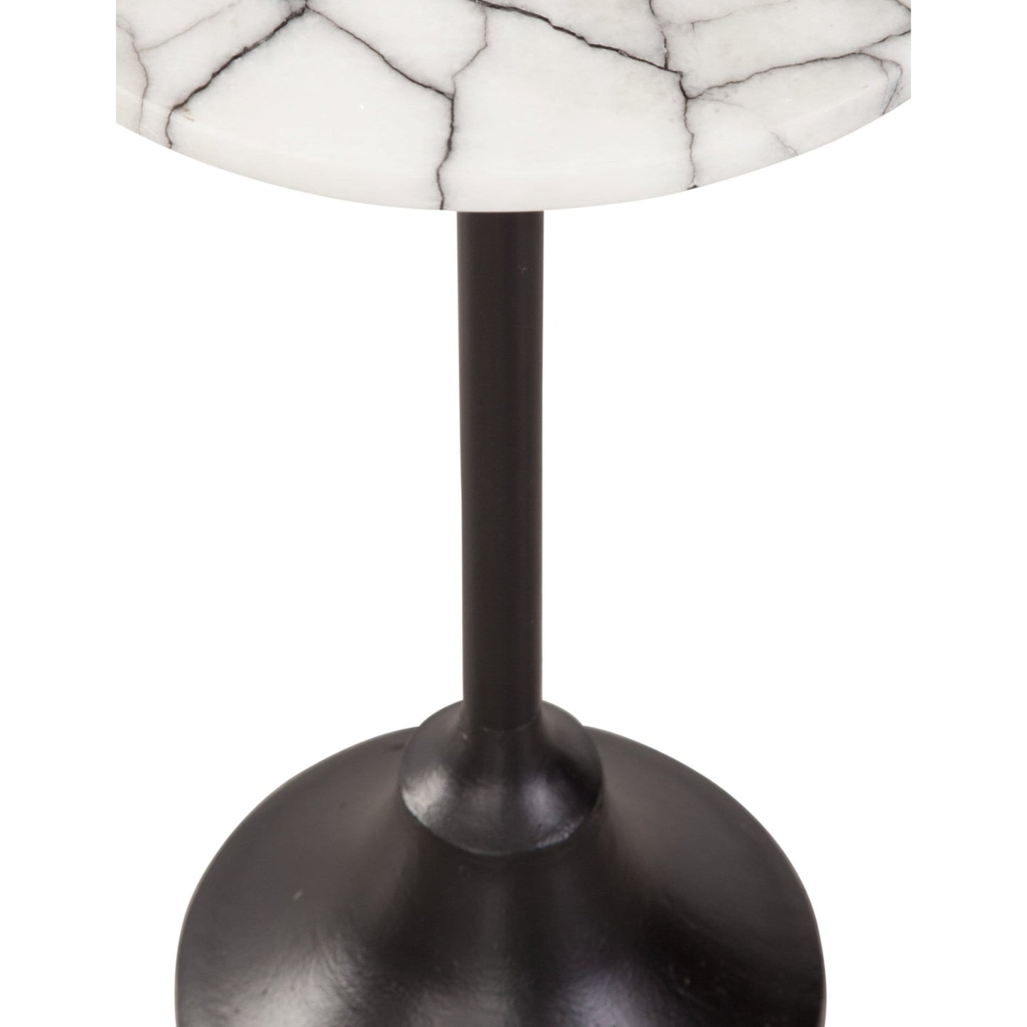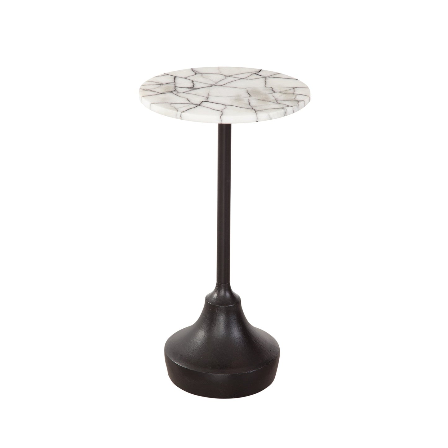 Embrace the elegance of marble with Talley Iron and Marble White Round Accent Table, and add a touch of drama and intrigue to your space. The sturdy iron base, coated in a bold matte black finish, exudes a sense of adventure and strength. Indulge in a touch of sophistication and class with this striking accent table.