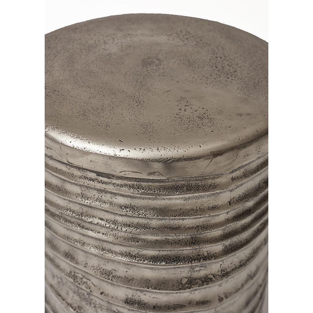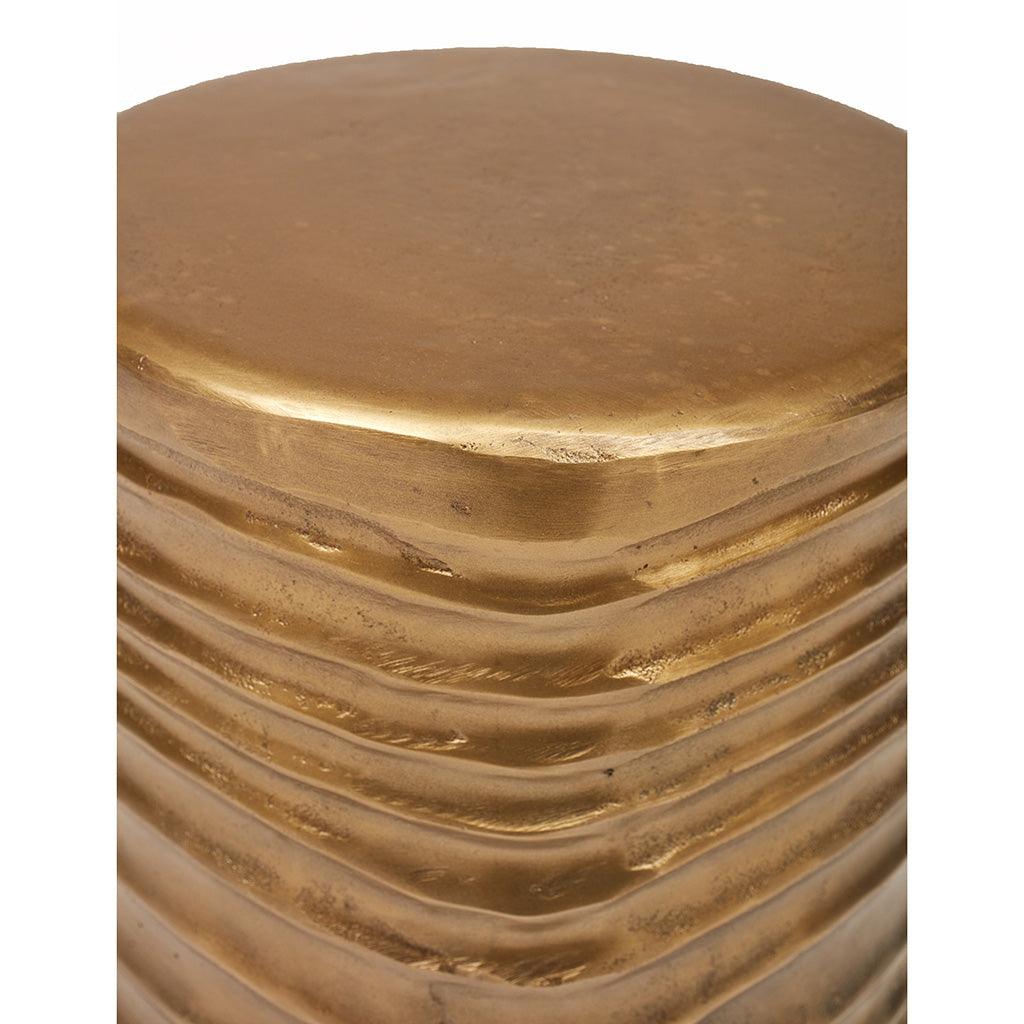 Crafted from reclaimed aluminum, the Tara Stool combines sustainability with contemporary design. Sitting 18" high, this piece provides versatility to a space - acting as a pedestal, decor piece or extra seating. Tara is available in multiple metallic tones. Expertly crafted from reclaimed aluminum, the Tara Stool offers a sustainable and modern design. With a versatile height of 18 inches, this piece can serve as a pedestal, decorative addition, or extra seating for any space. Plus, it's available in a variety of stunning metallic tones, providing endless style options for your home.