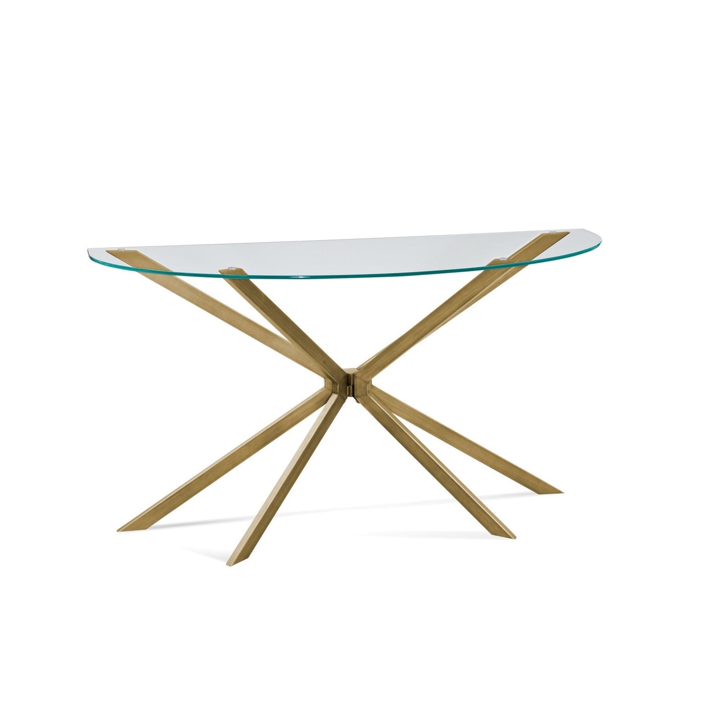 Tess Steel and Glass Gold Geometric Console Table Features: