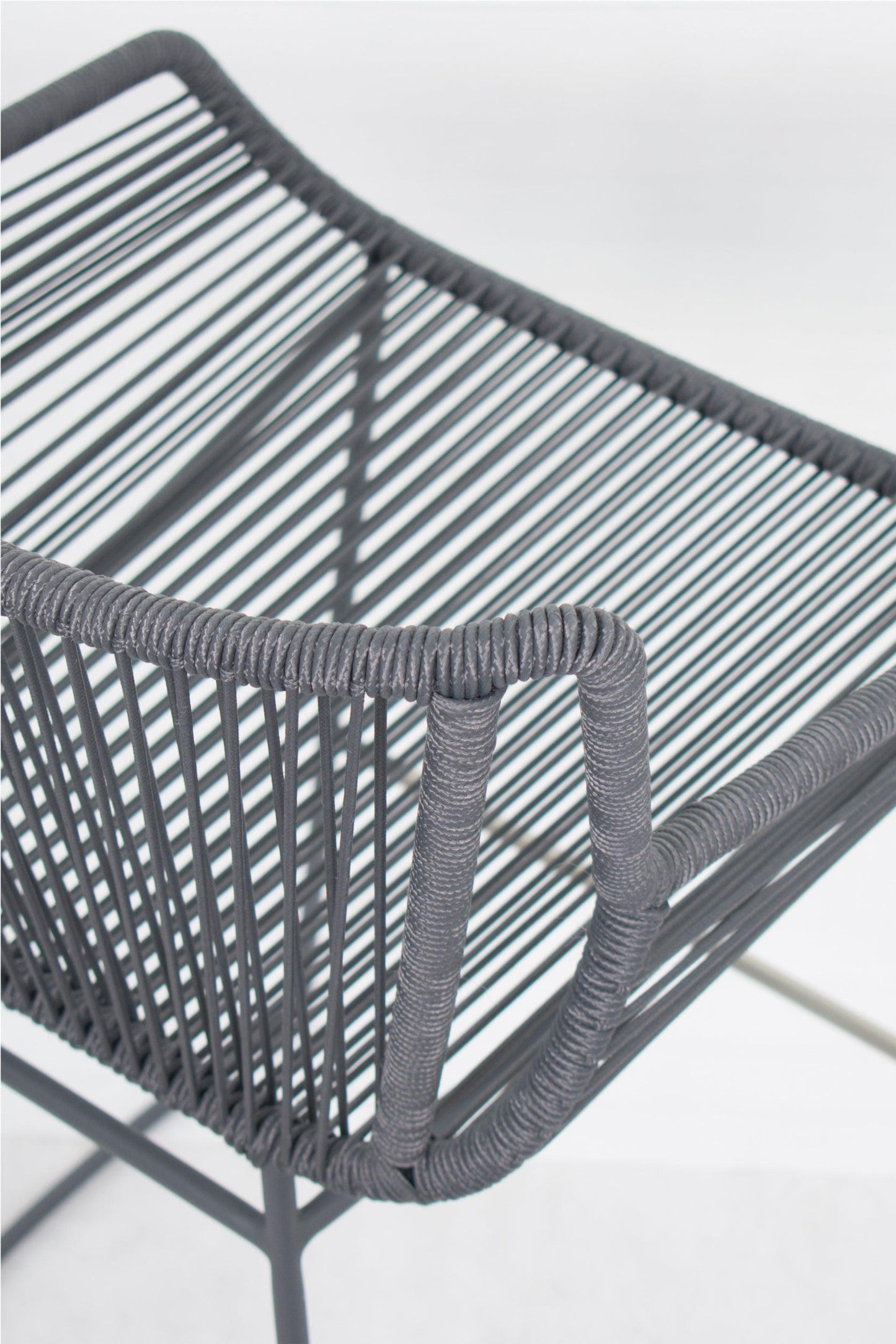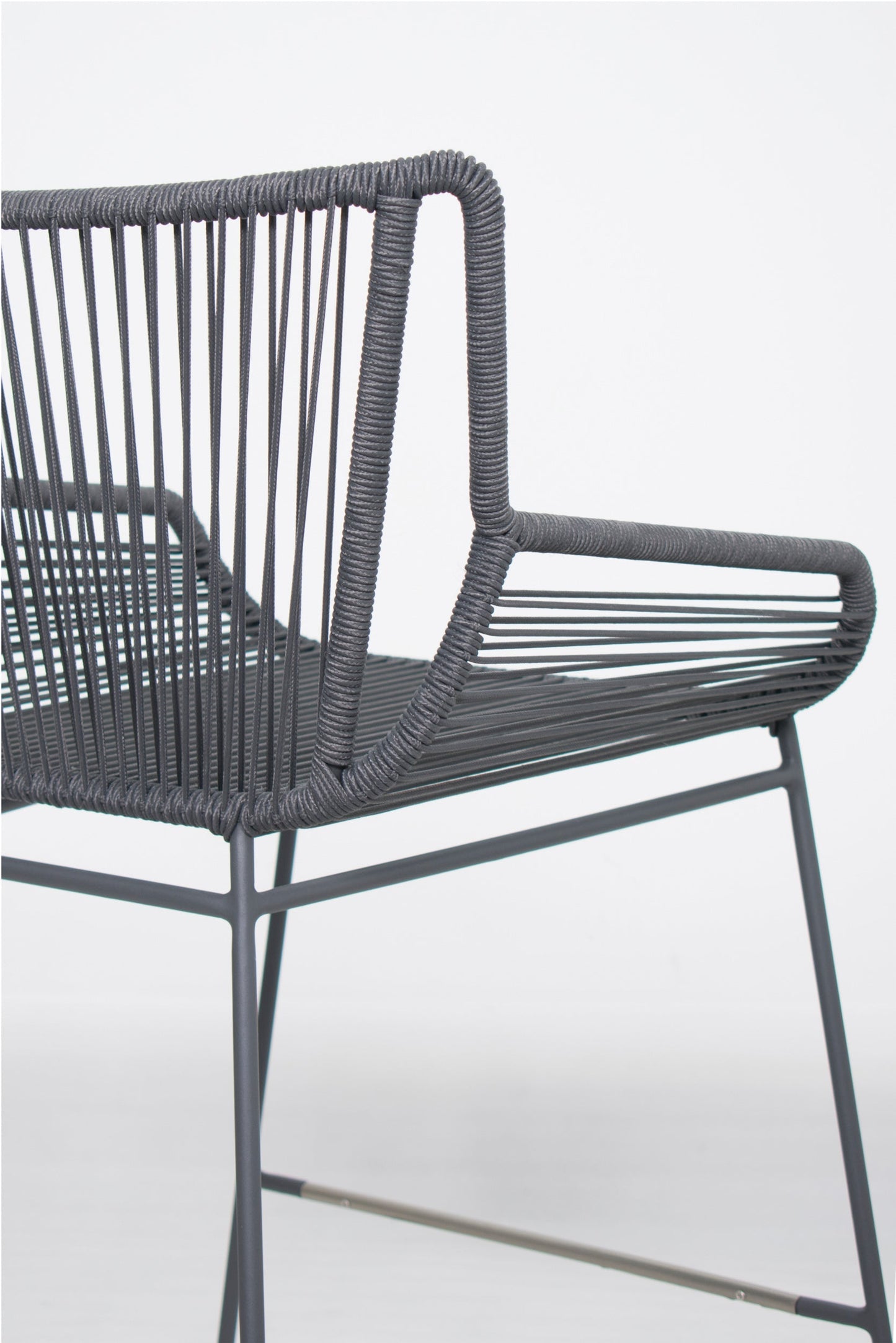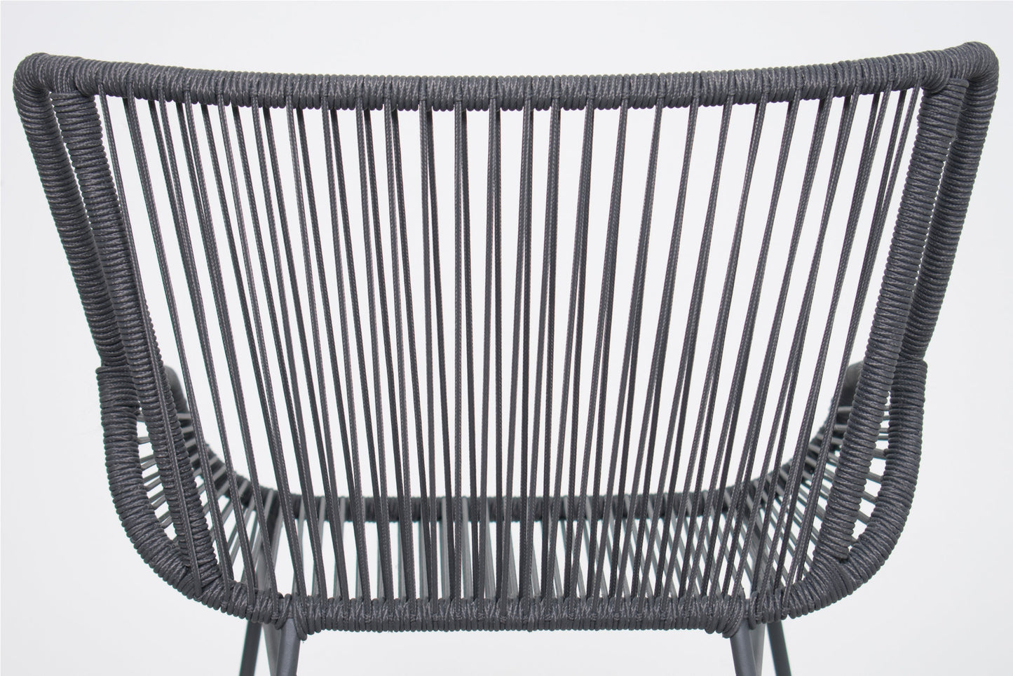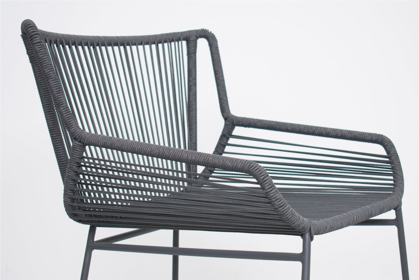 - Powder-coated galvanized steel frame, polypropylene rope weave, black nylon glides