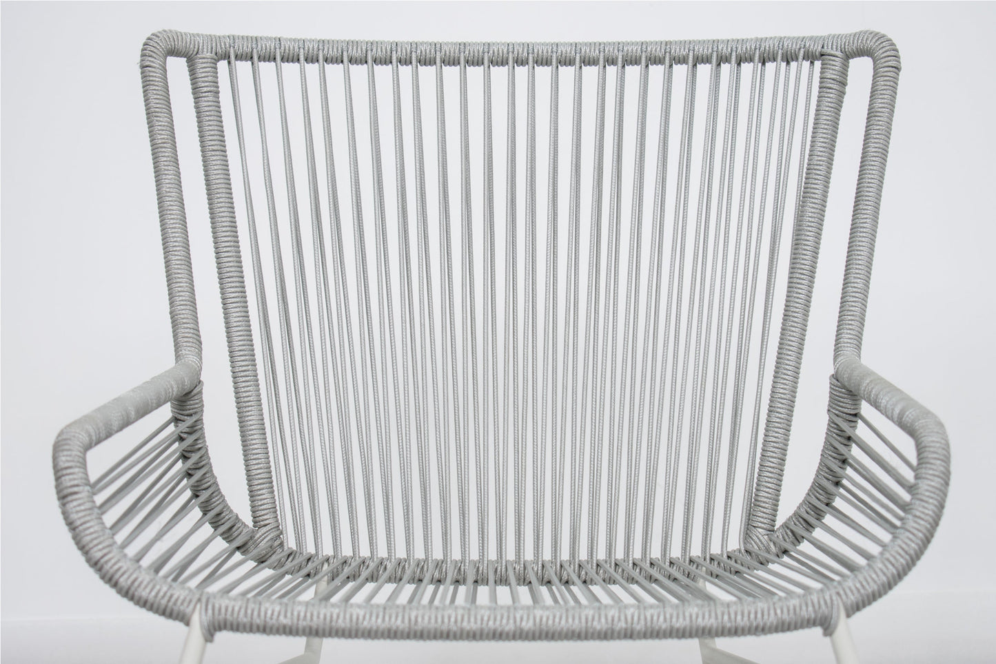 - Powder-coated galvanized steel frame, polypropylene rope weave, black nylon glides