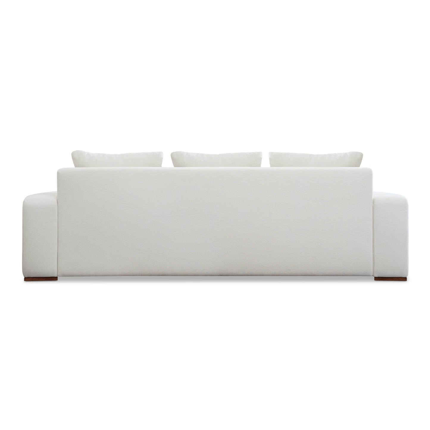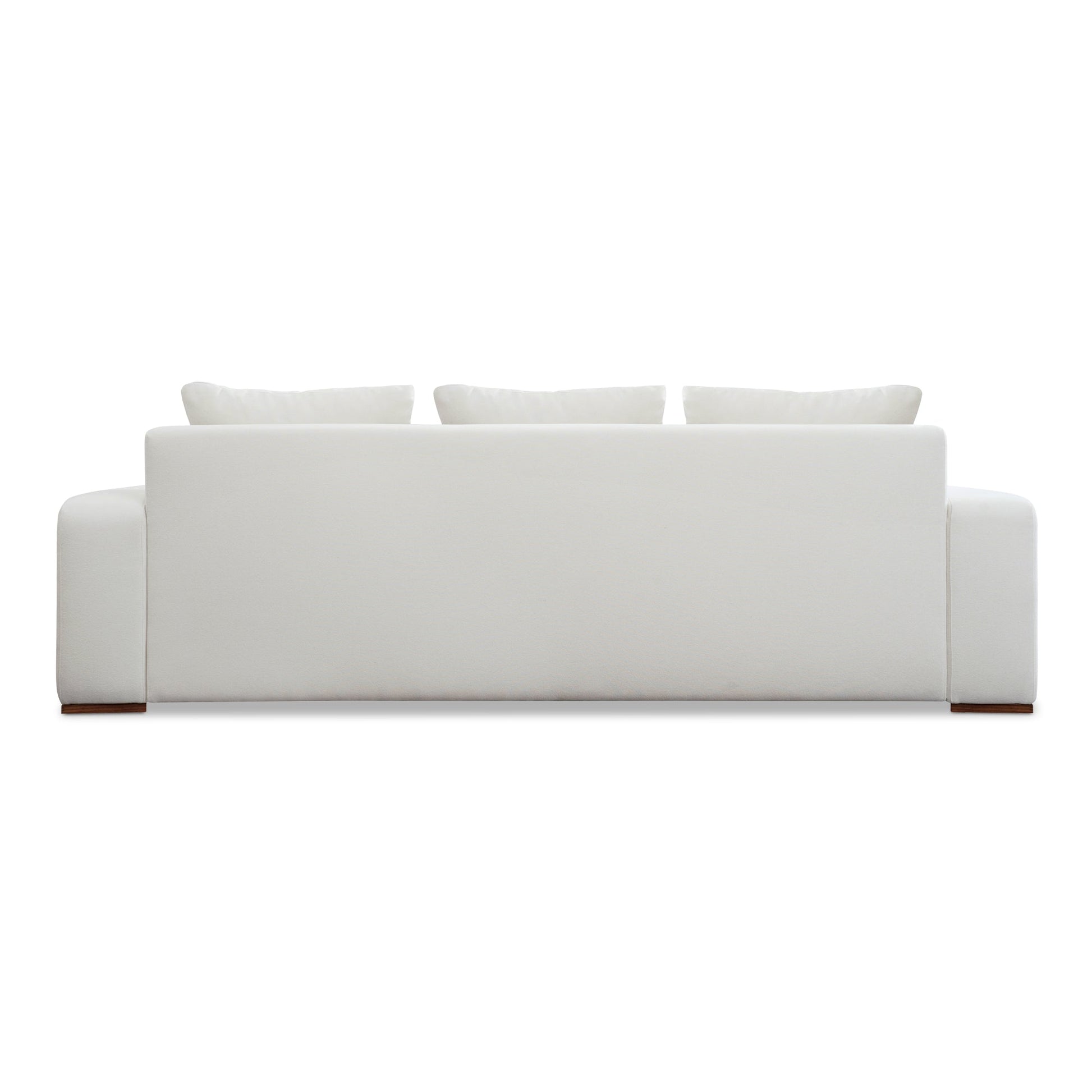 The Thomas Sofa in Ivory, Rust, and Grey offers a luxurious seating option for any living space, combining style, comfort, and practicality. Each version features an oversized design with wide track arms and a bench-style seat, offering plenty of space to relax. The Ivory version provides a clean white appearance, while the Rust version adds a pop of warm orange, and the Grey option brings a timeless, neutral tone. All versions are covered in durable 100% polyester fabric, ensuring longevity. The seat is topped with a plush 70% feather blend for optimal comfort, and the even channeling within the seat ensures that the feathers remain evenly distributed.