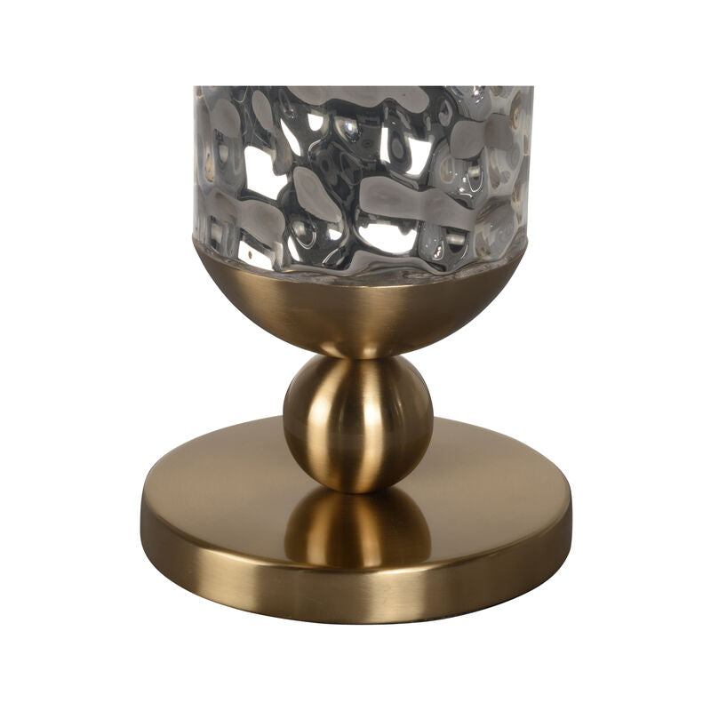 The Tiffany Lamp is a beautiful mix of old-world charm and modern style. It has an antique brass frame that adds a touch of vintage elegance to any space. At its center, the lamp features textured mercury glass, creating a lovely contrast with the warm tones of the brass. This unique mix of materials gives the lamp a special look that catches the eye and makes it a standout piece in any room. Its design is sure to add a touch of class to your home.