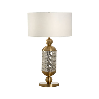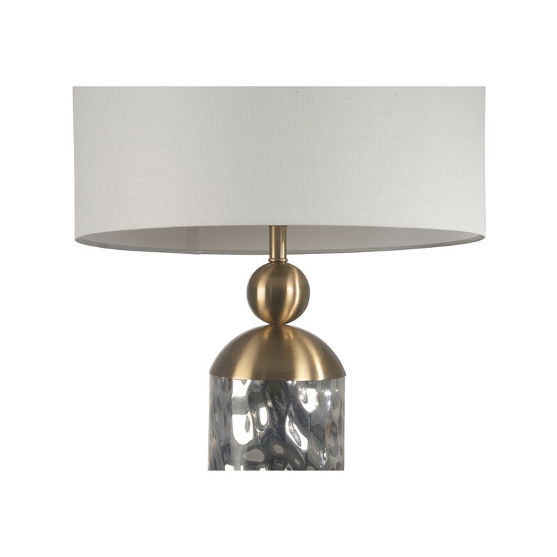 The lamp is topped with a classic white drum shade, which softens the light and creates a cozy atmosphere. This makes it a great choice for living rooms, bedrooms, or any space where you want a warm and inviting glow. The lamp's soft, ambient light enhances the mood of your room, making it a perfect addition for relaxing evenings or special occasions. Its elegant style fits seamlessly with both traditional and contemporary decor.