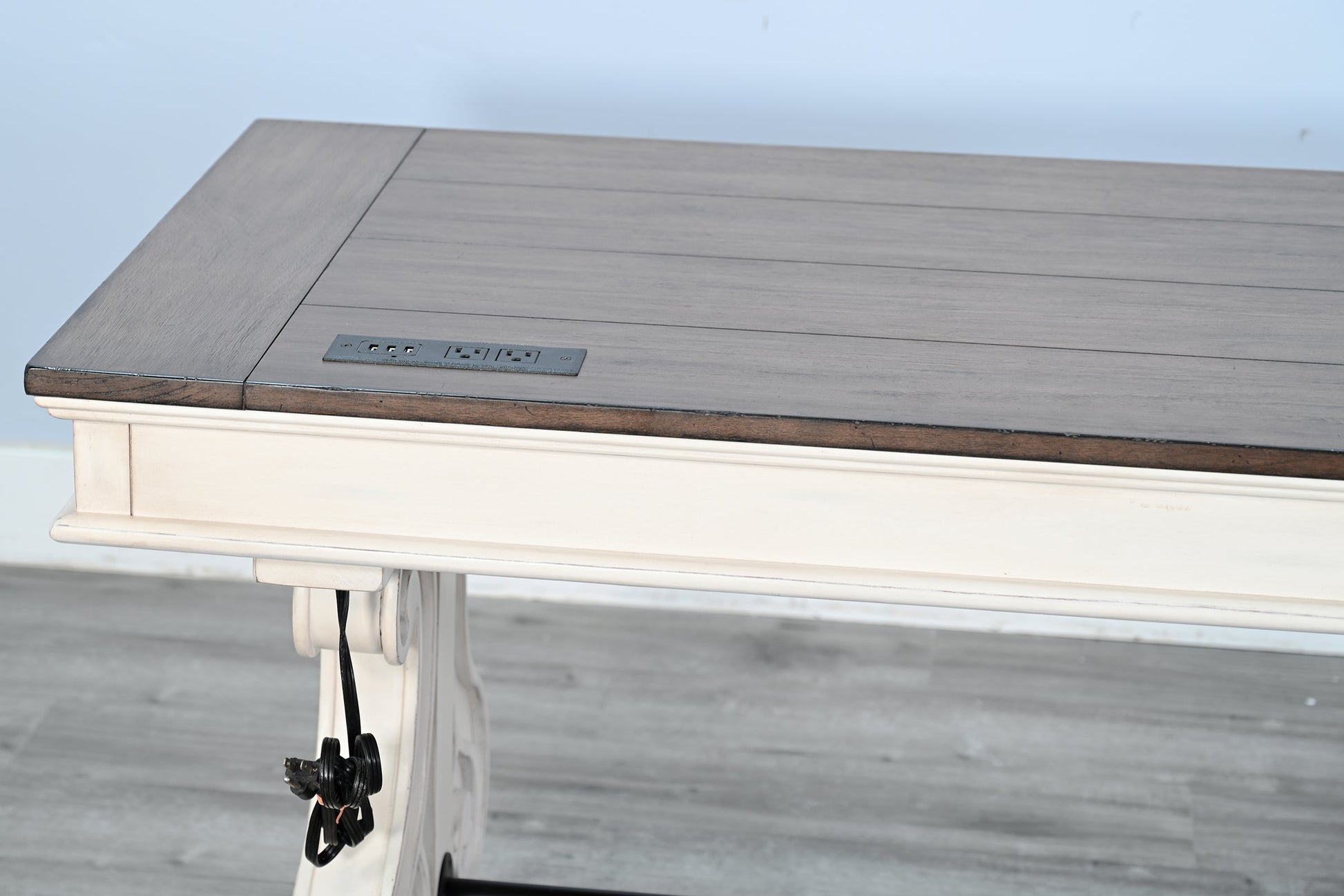 The Timberline White Desk with Power Strip is perfect for those who need an organized and efficient workspace. It features a built-in plug-in outlet, making it easy to keep your devices powered up. The desk has three spacious drawers, providing ample space to store and organize your essentials, keeping your workspace neat. With its decorative shaped leg design, the desk adds a touch of style and sophistication to any room. Made from strong mahogany and mindi, it promises durability. Its transitional style and clean white finish make it a great fit for various decor styles, offering both functionality and elegance.