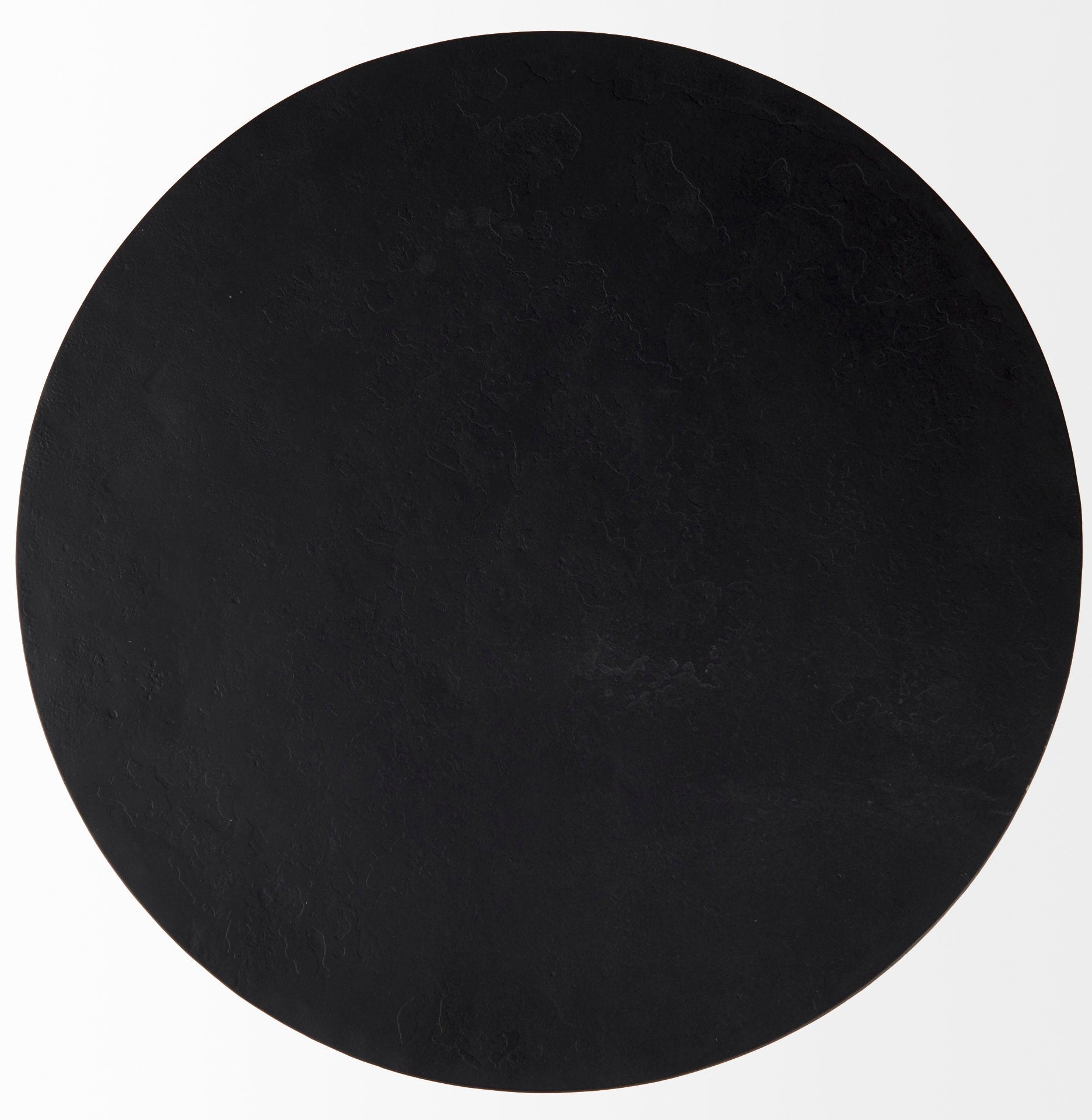 The Timothy Ebony Black Iron Side Table brings a touch of industrial charm to any living space. Crafted from solid iron, this side table is both durable and sturdy, ensuring it stands the test of time. Its sleek, circular design is perfect for those seeking a minimalist yet stylish addition to their home. The dark ebony black finish provides a striking visual contrast, making it a standout piece in any room. With fine divots and textures, this table adds an intriguing visual interest that enhances its industrial appeal.