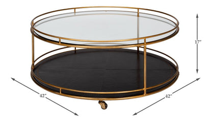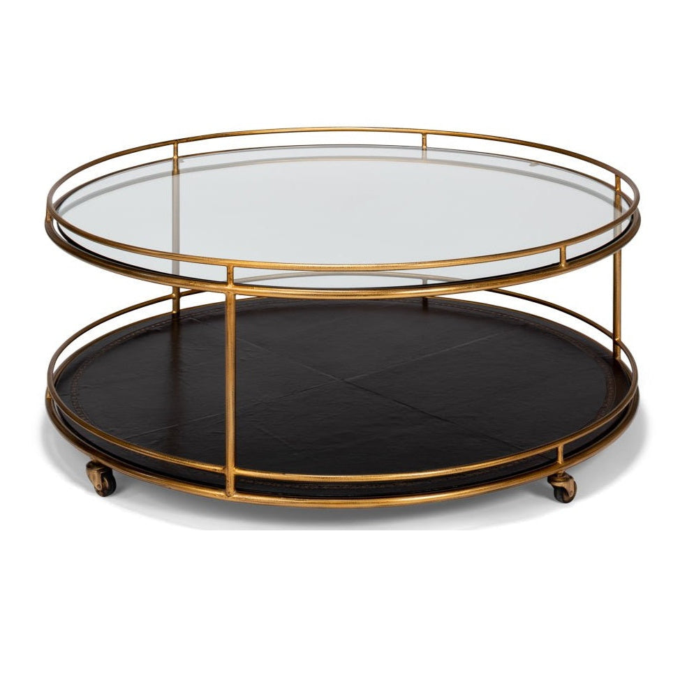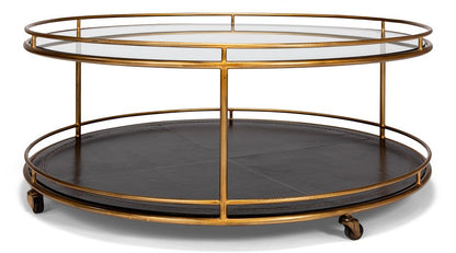 Trolley Round Cocktail Table With Glass Top And Leather Features: