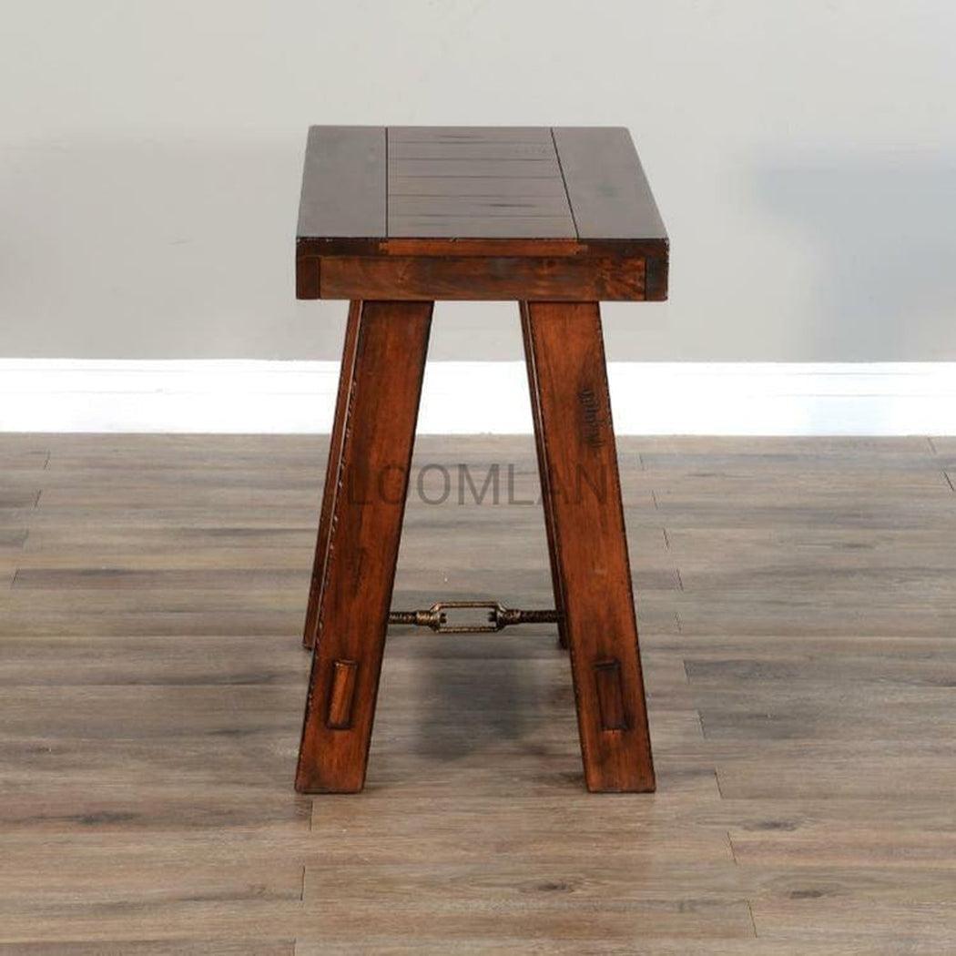 Introduce a touch of rustic charm into your home with our Tuscany Collection. Featuring a planked table top, flared legs with mortise and tenon joinery, metal link details, and a distressed brown finish, this chair side table blends rustic details with a modern and uncomplicated look. Crafted from solid mahogany for durability and a vintage mocha finish for a warm and inviting feel. Assembly required.